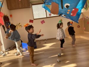 「オニがきたらおには~そと!豆をなげるんだよ!」