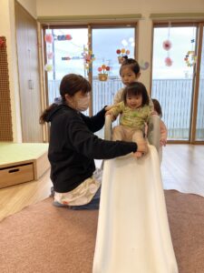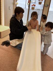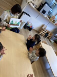 りんご組はお名前よびや季節の歌をうたっていました(^^♪