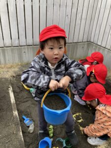 砂がたくさん入っているバケツも持てるようになりました💪