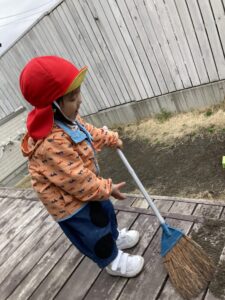 ほうきではいていると