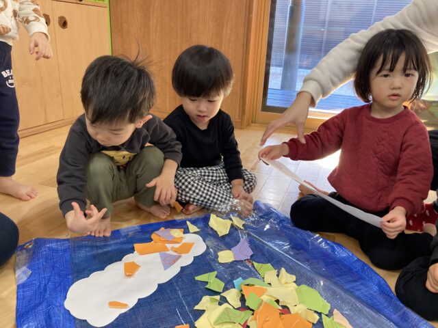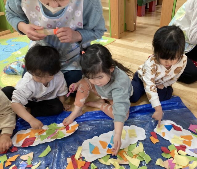 こんなに沢山の画用紙ちぎってこれから何を作るの~?!