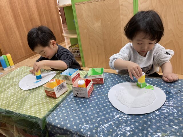 絵の具スタンプで色付けして