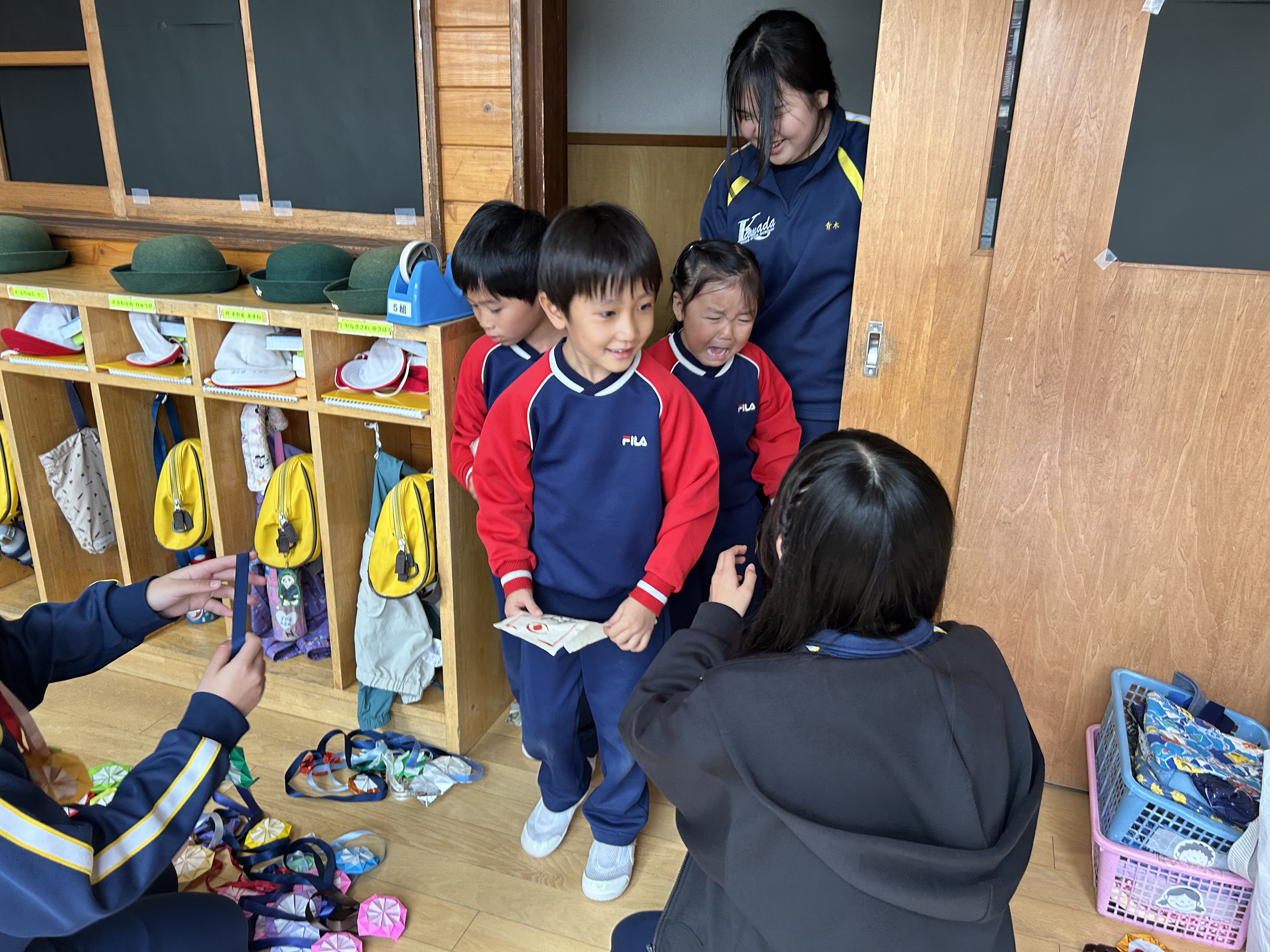 中学生のお兄ちゃんお姉ちゃんに興味津々の子ども達!