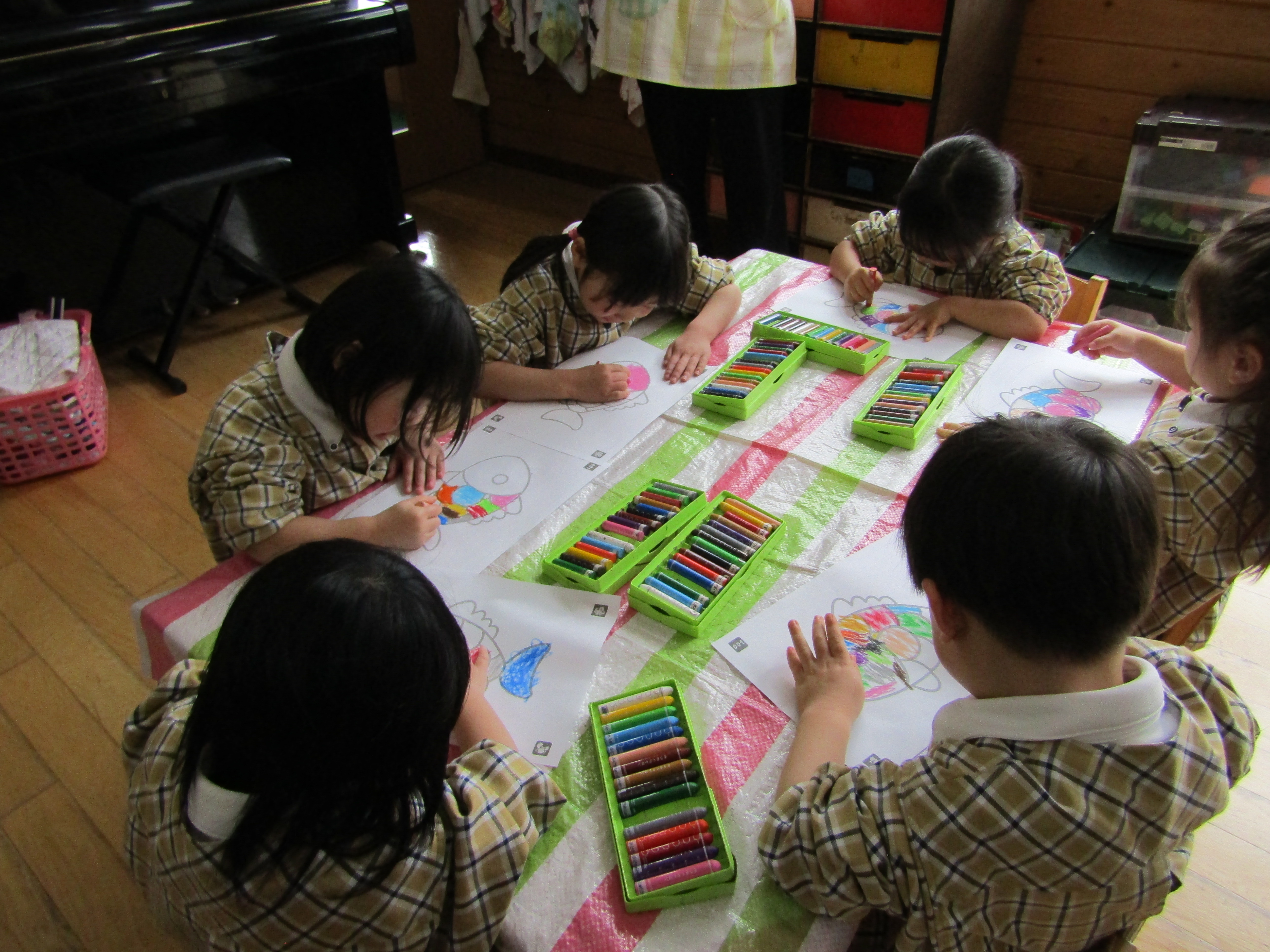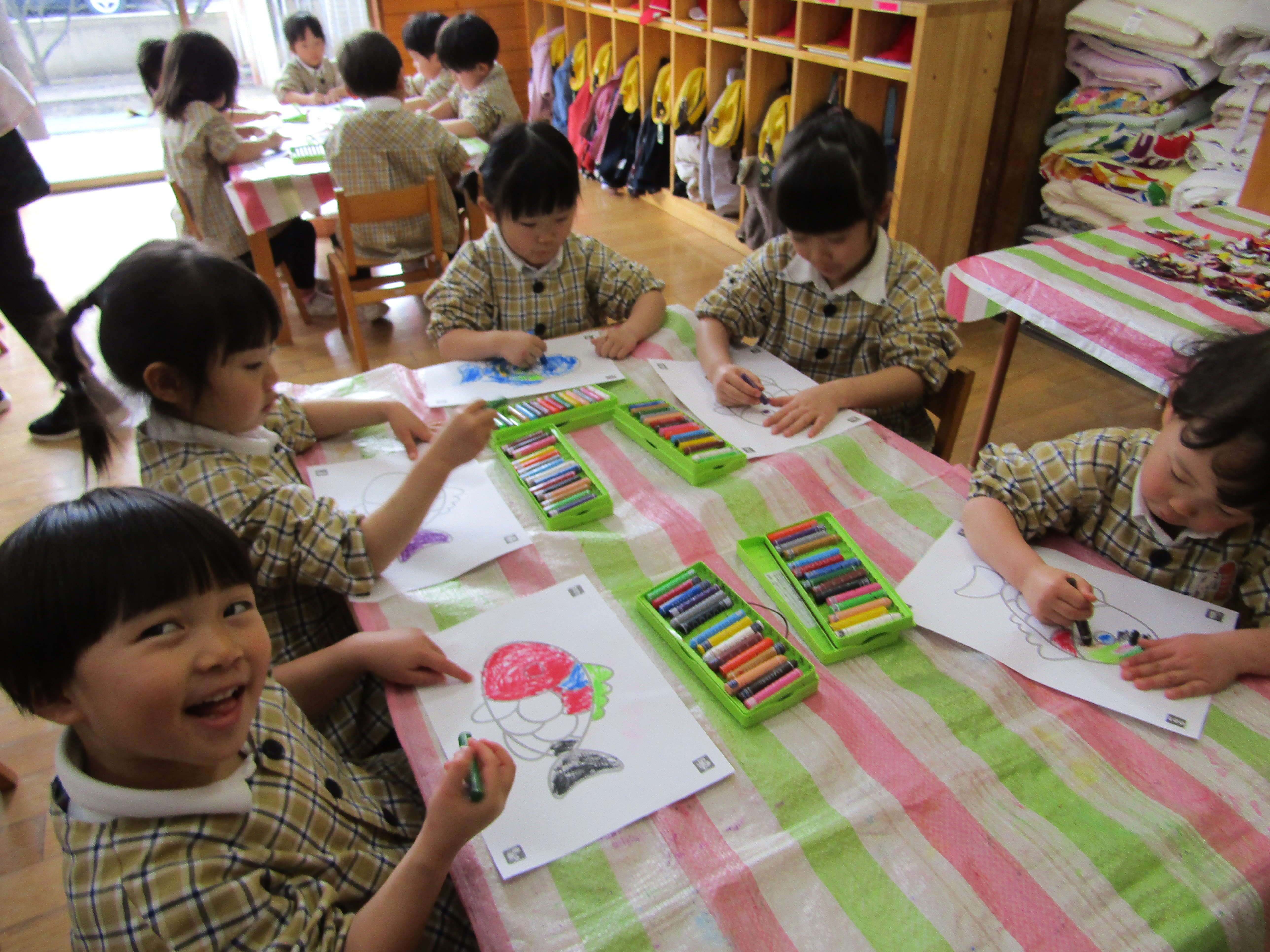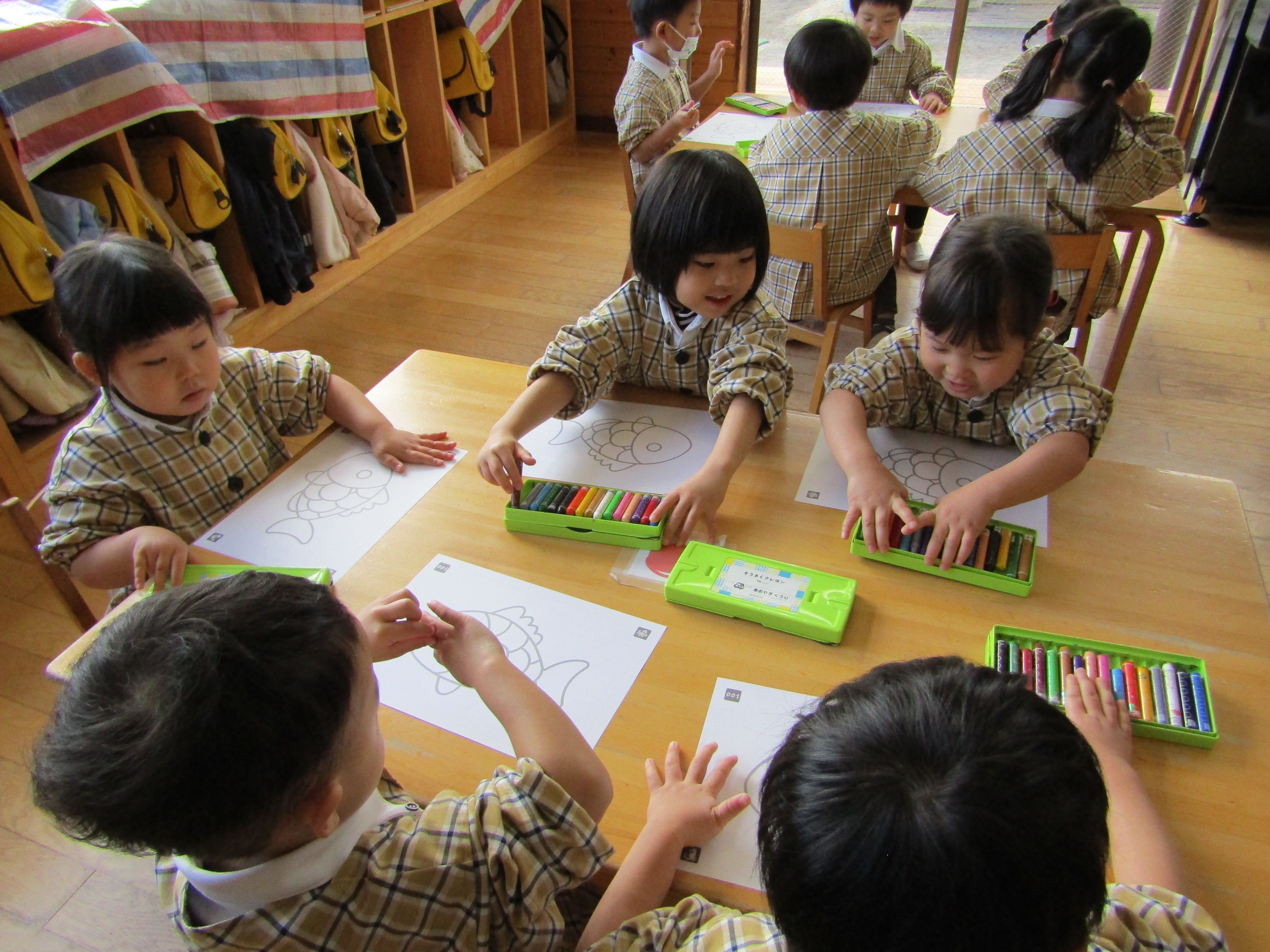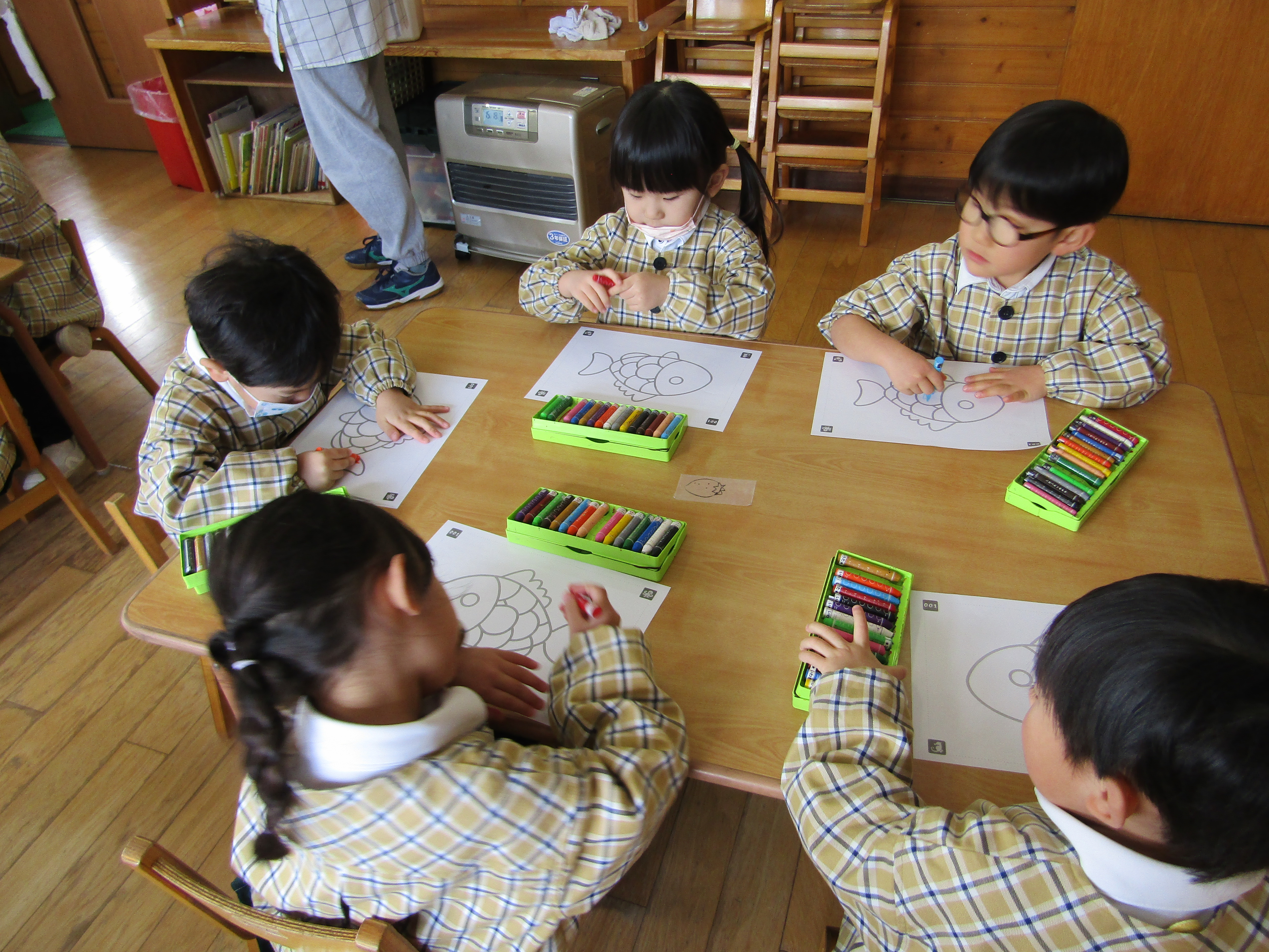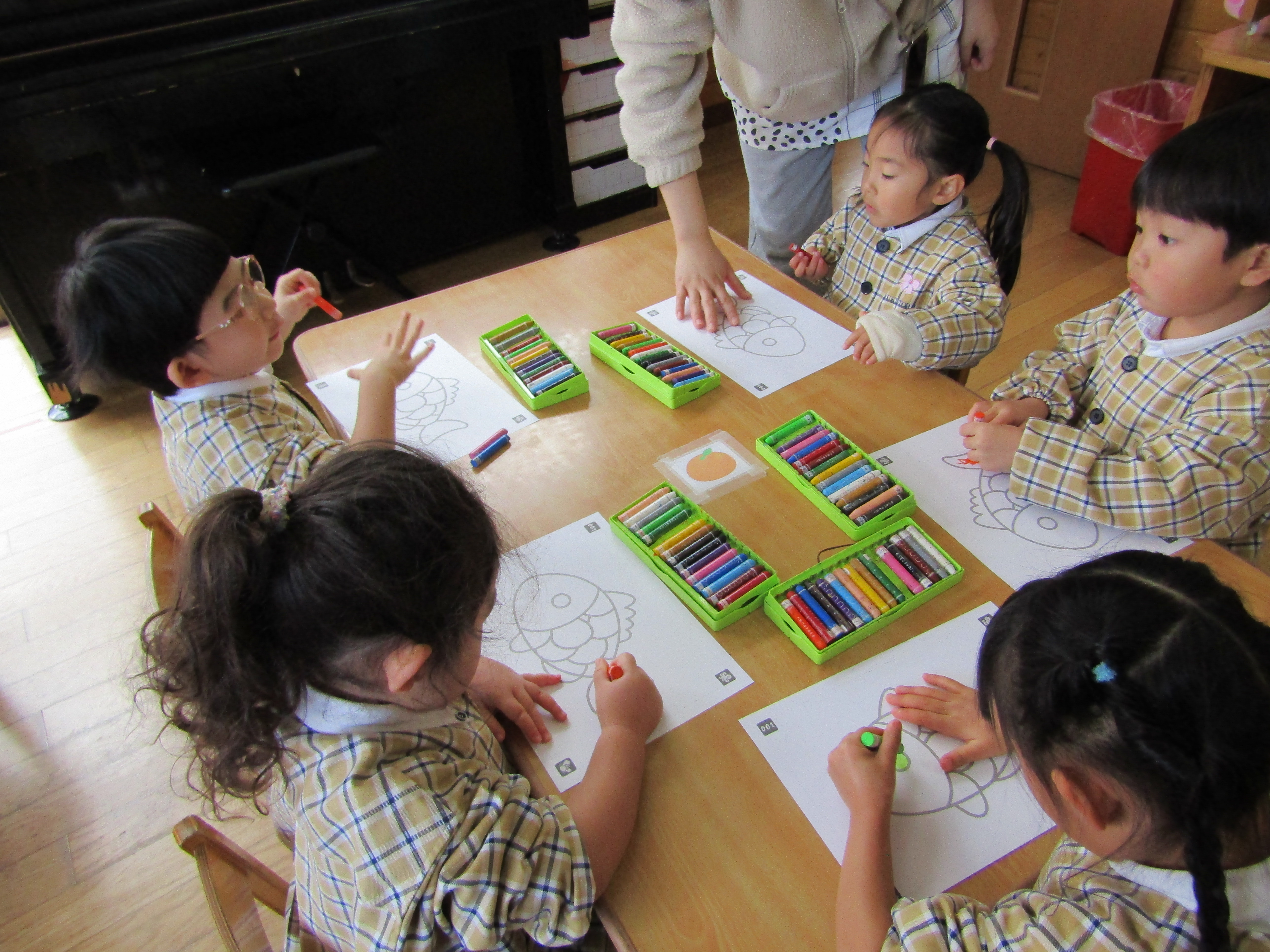 お魚の絵に色を塗っているつぼみさん達!