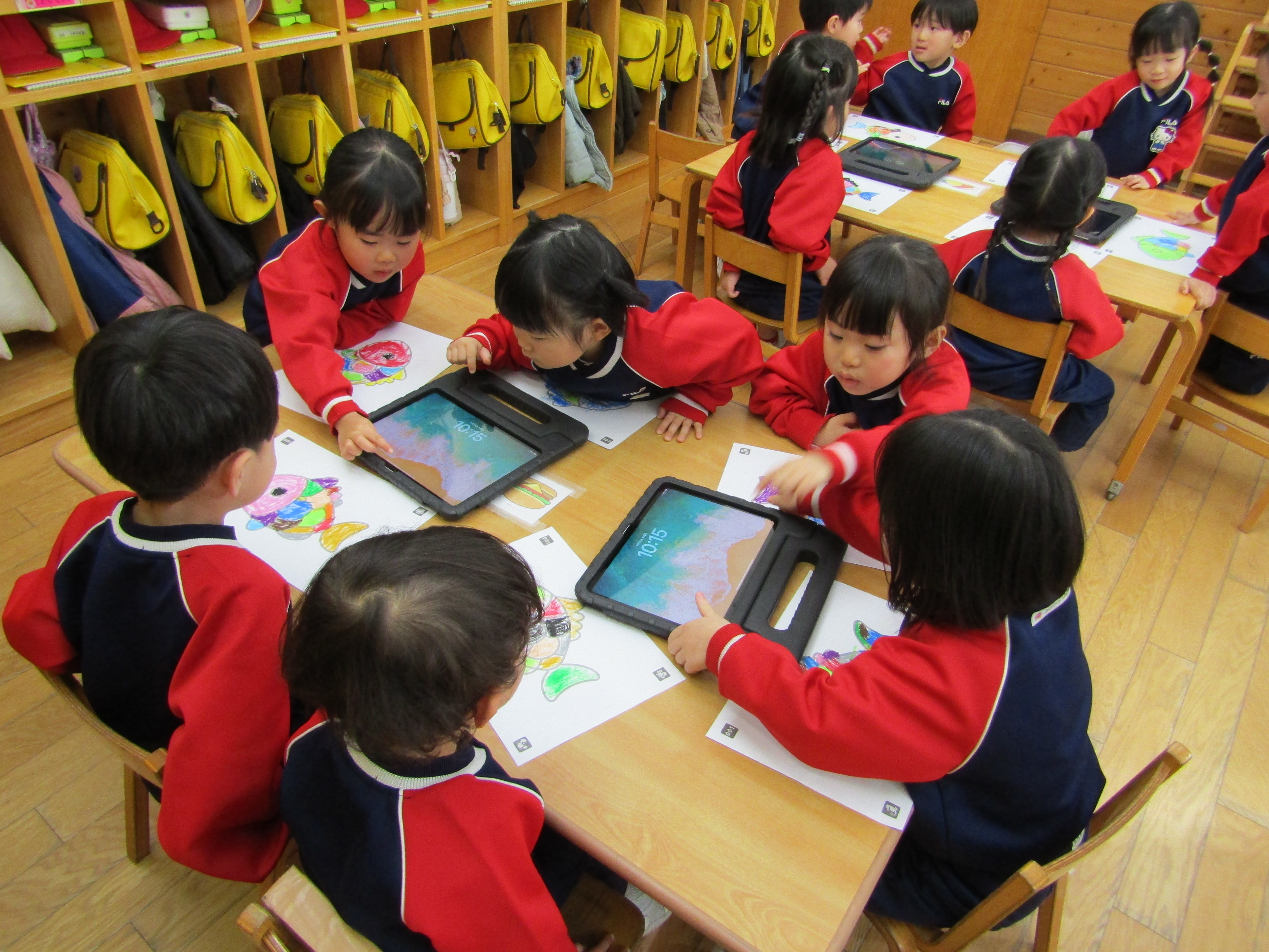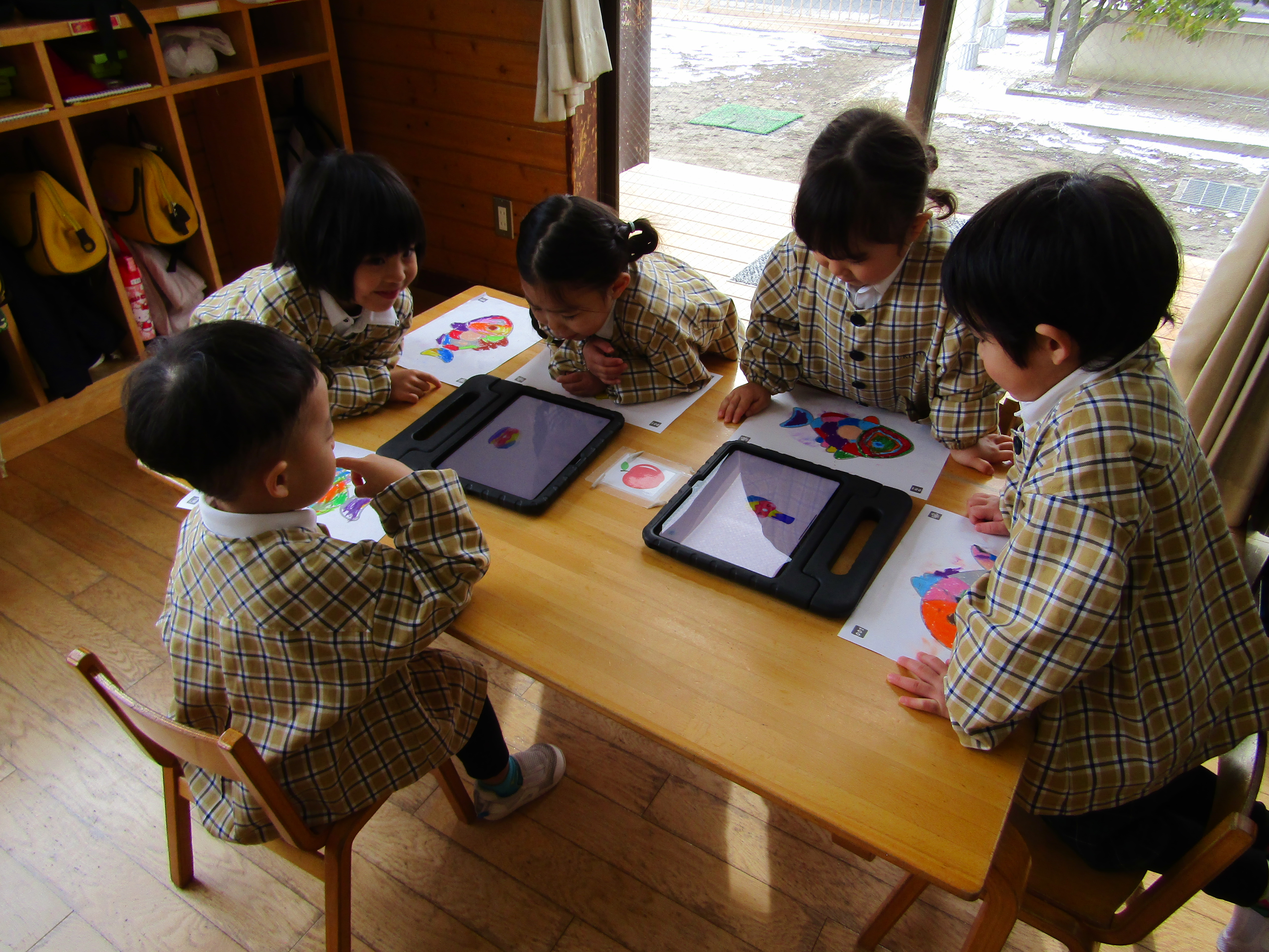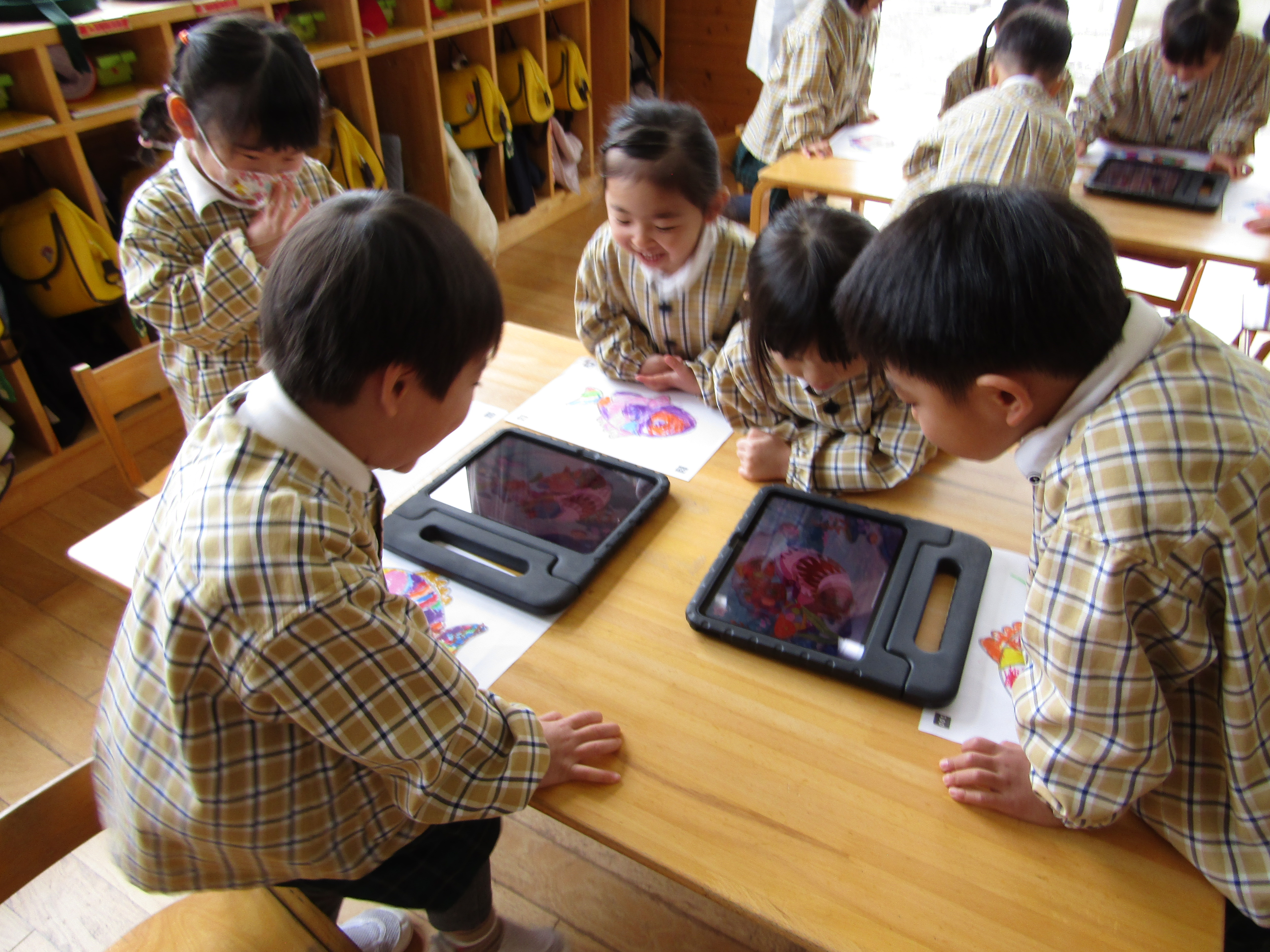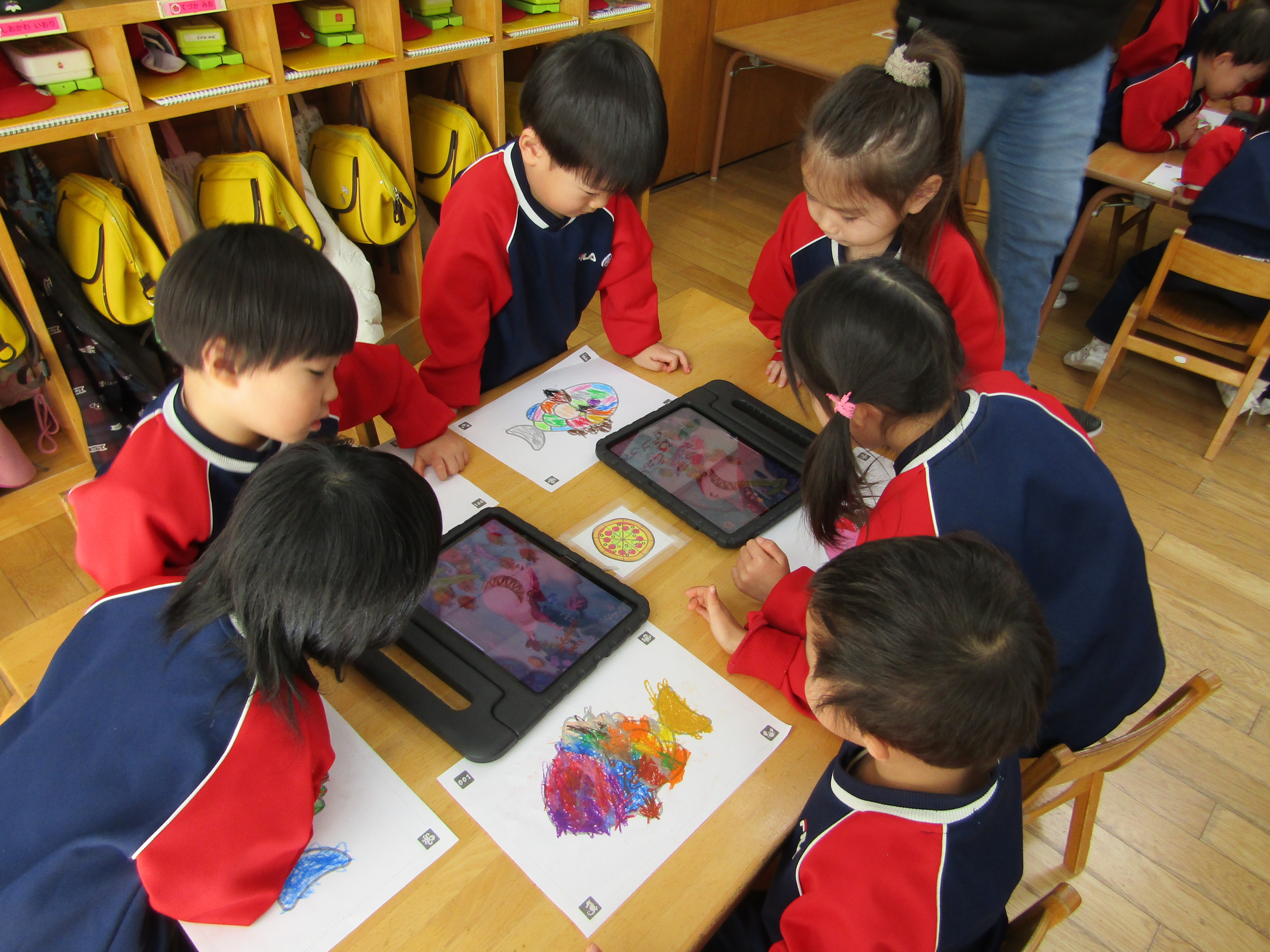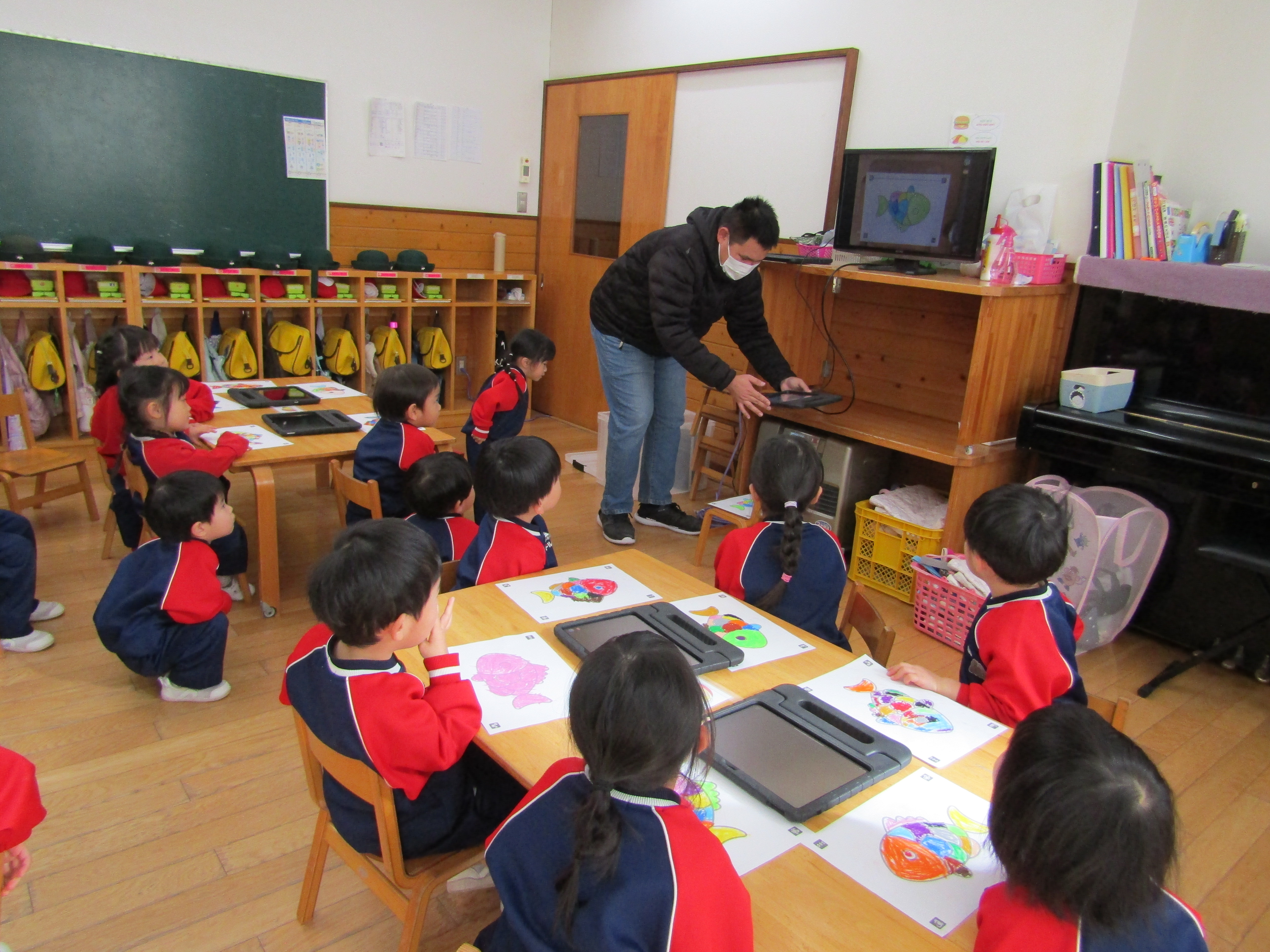 あか組さんも塗った魚をiPadの中へ!