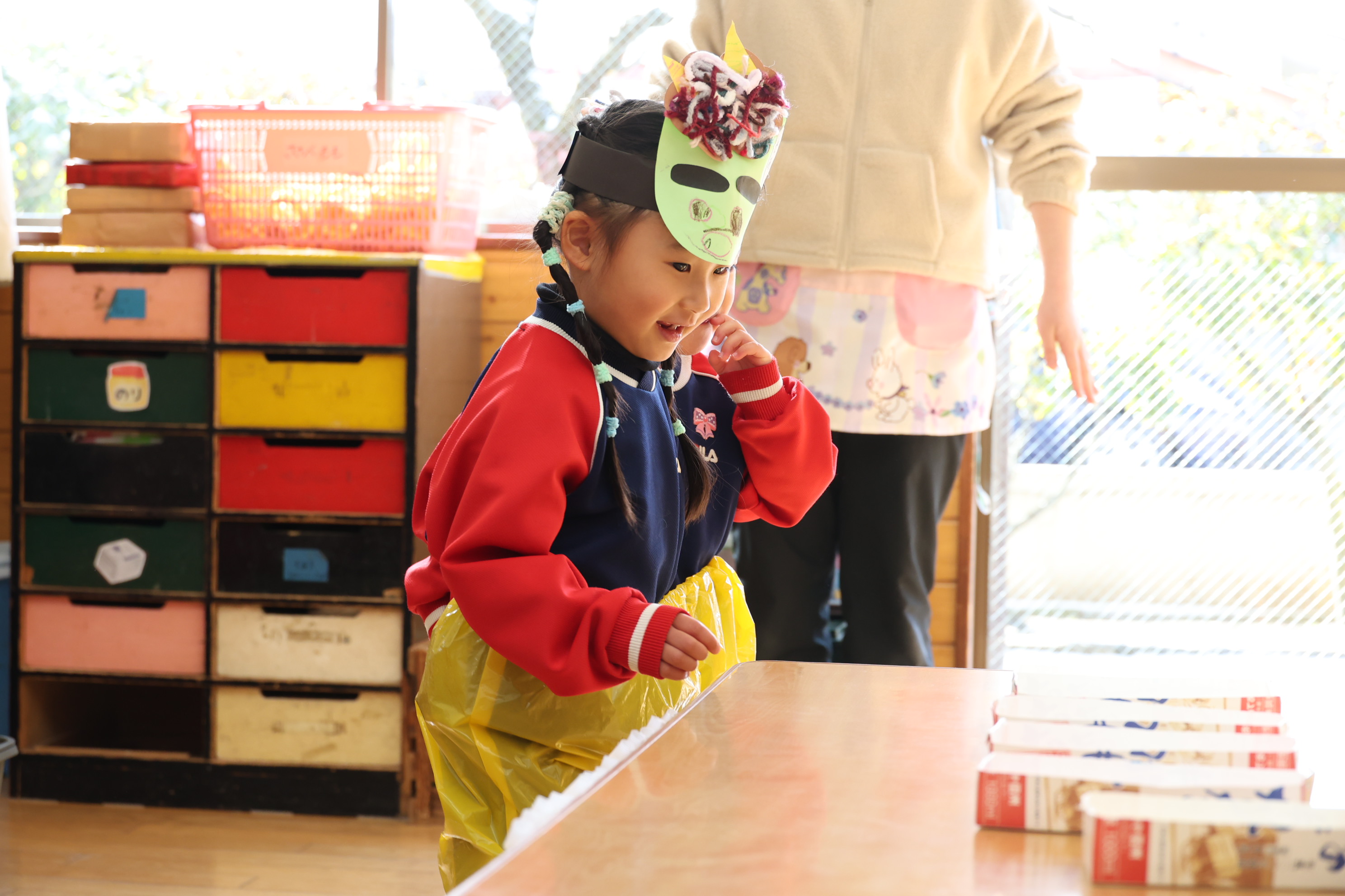 つぼみさんも鬼のお面をつけて準備万端!