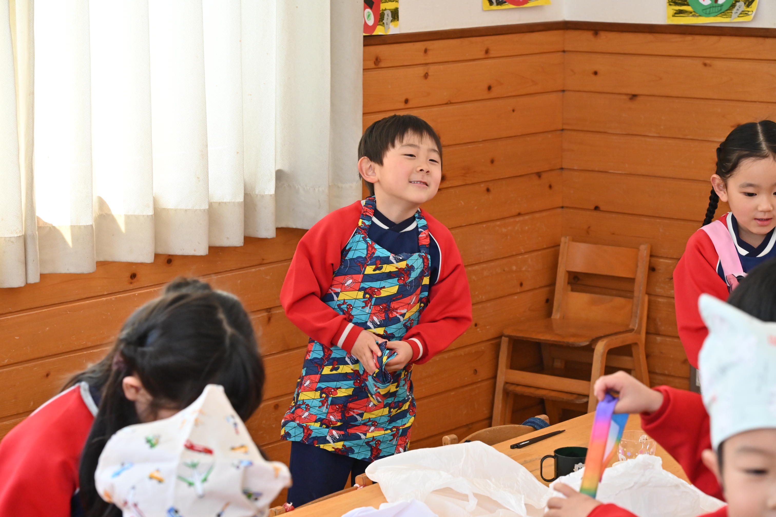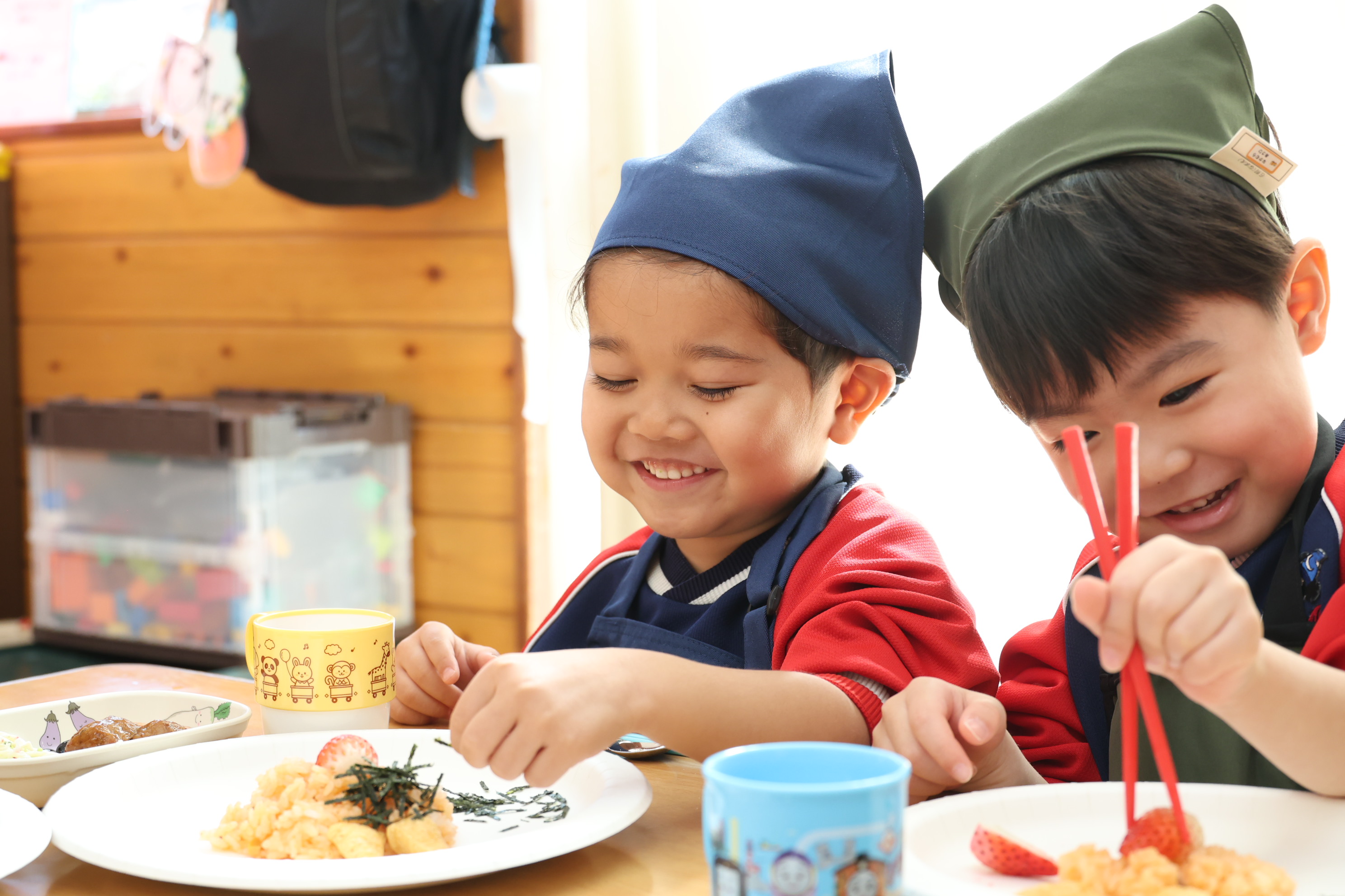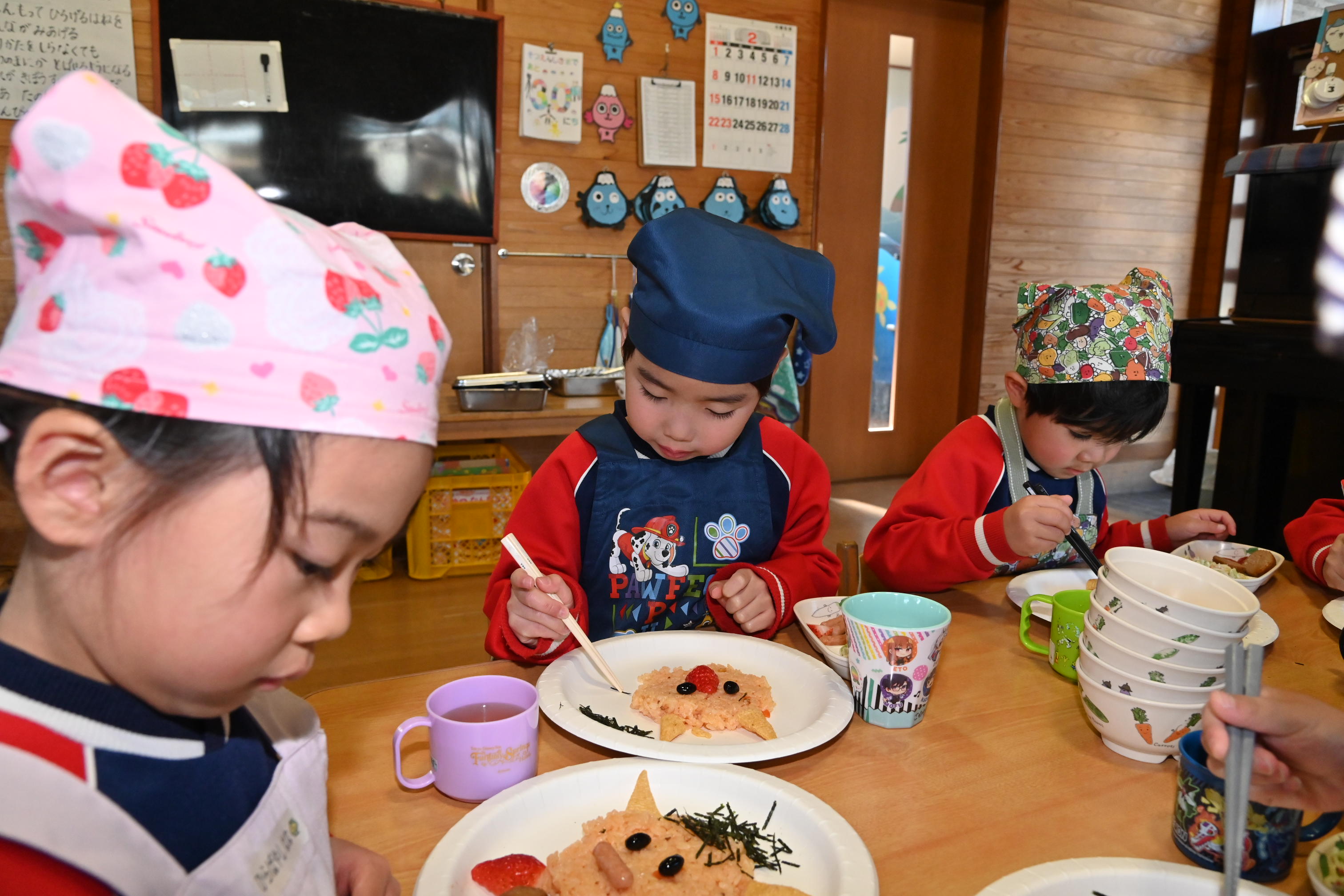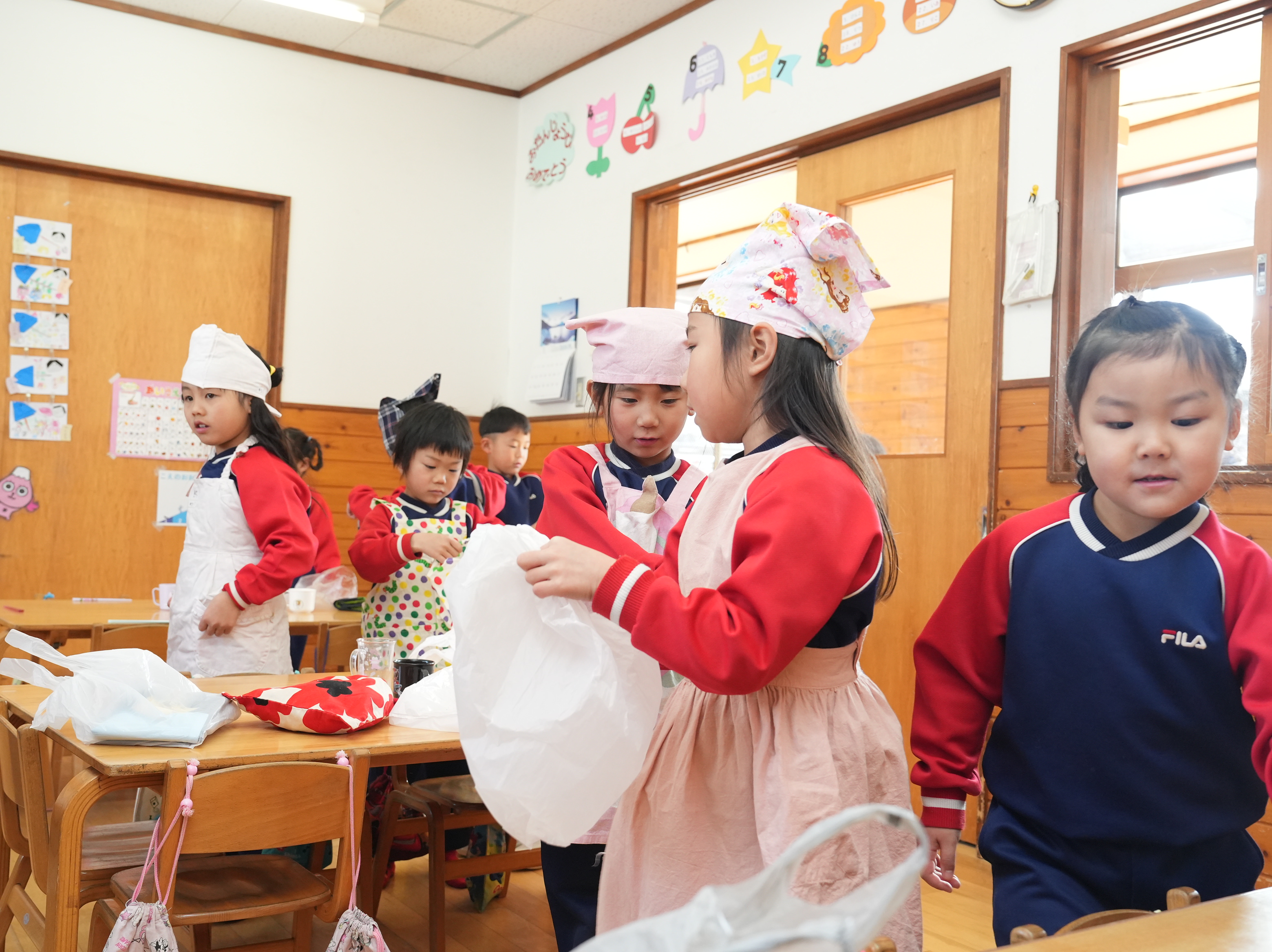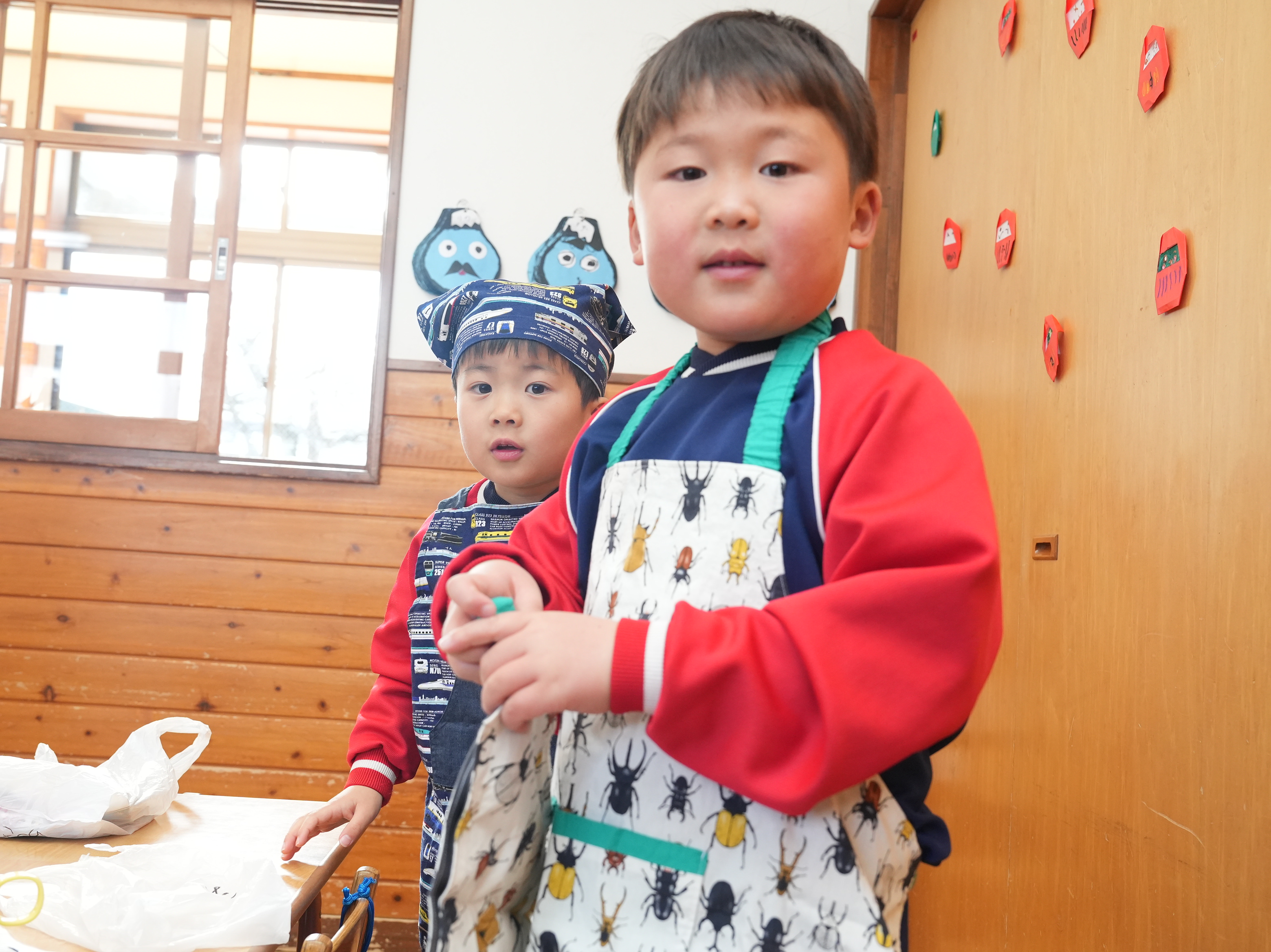 もも組さんのお部屋では節分で食べる恵方巻づくり!