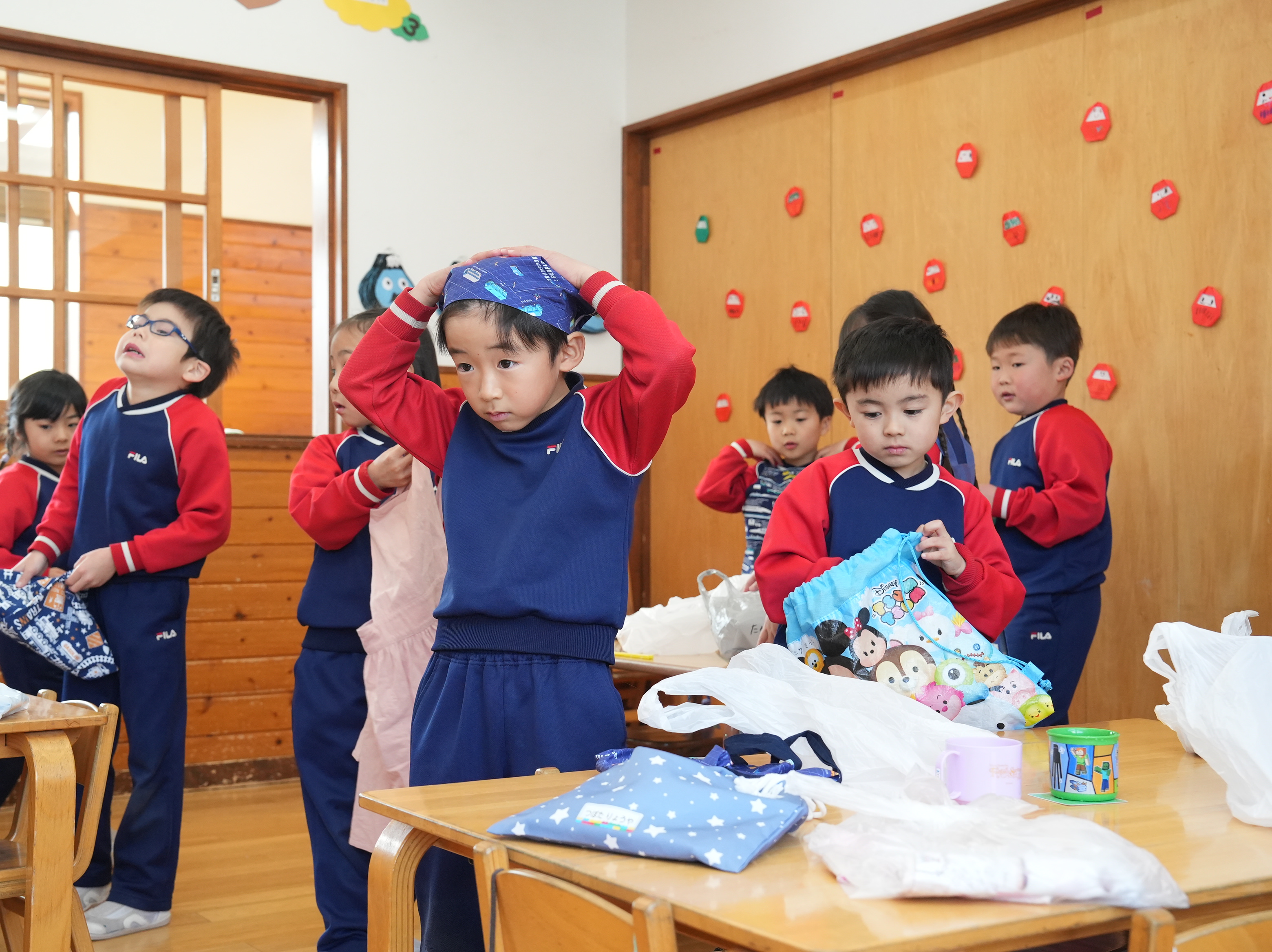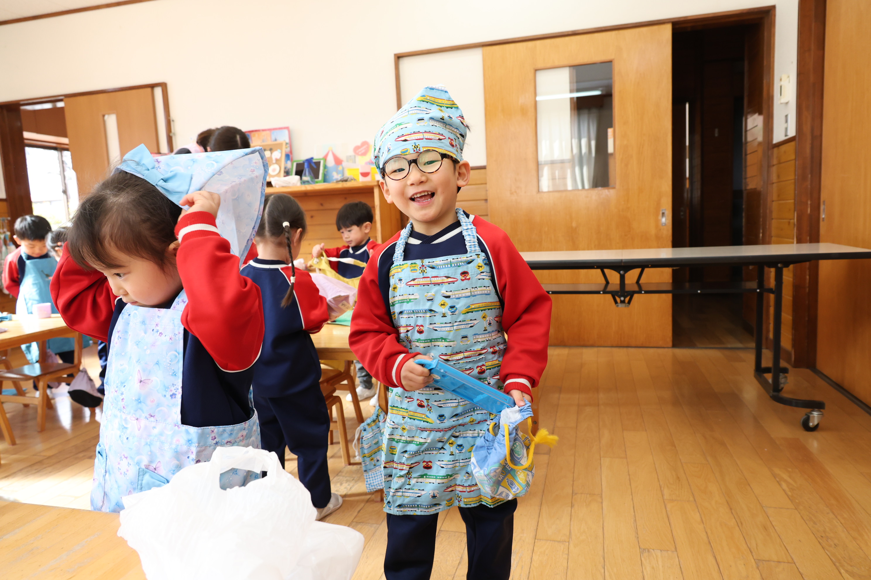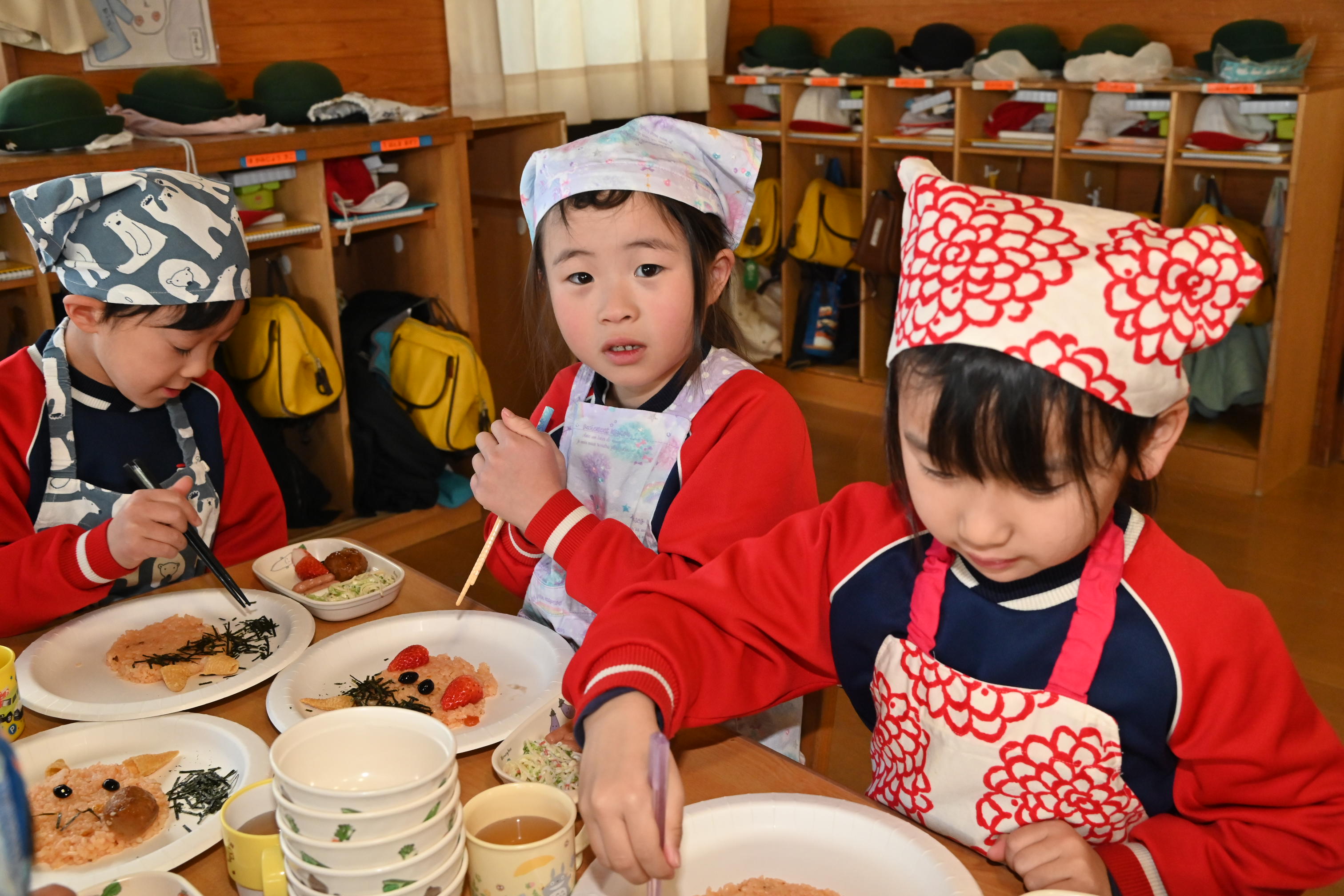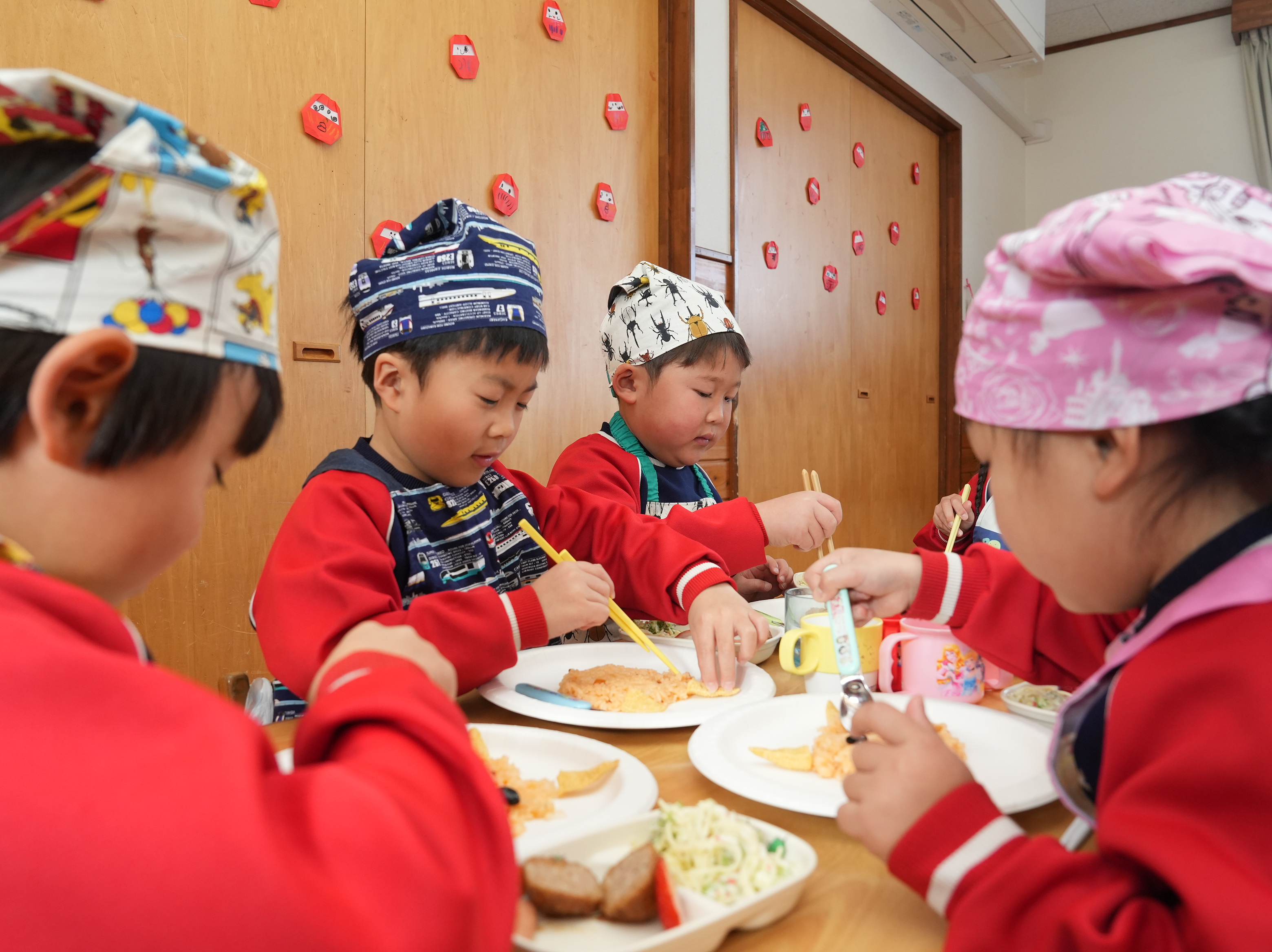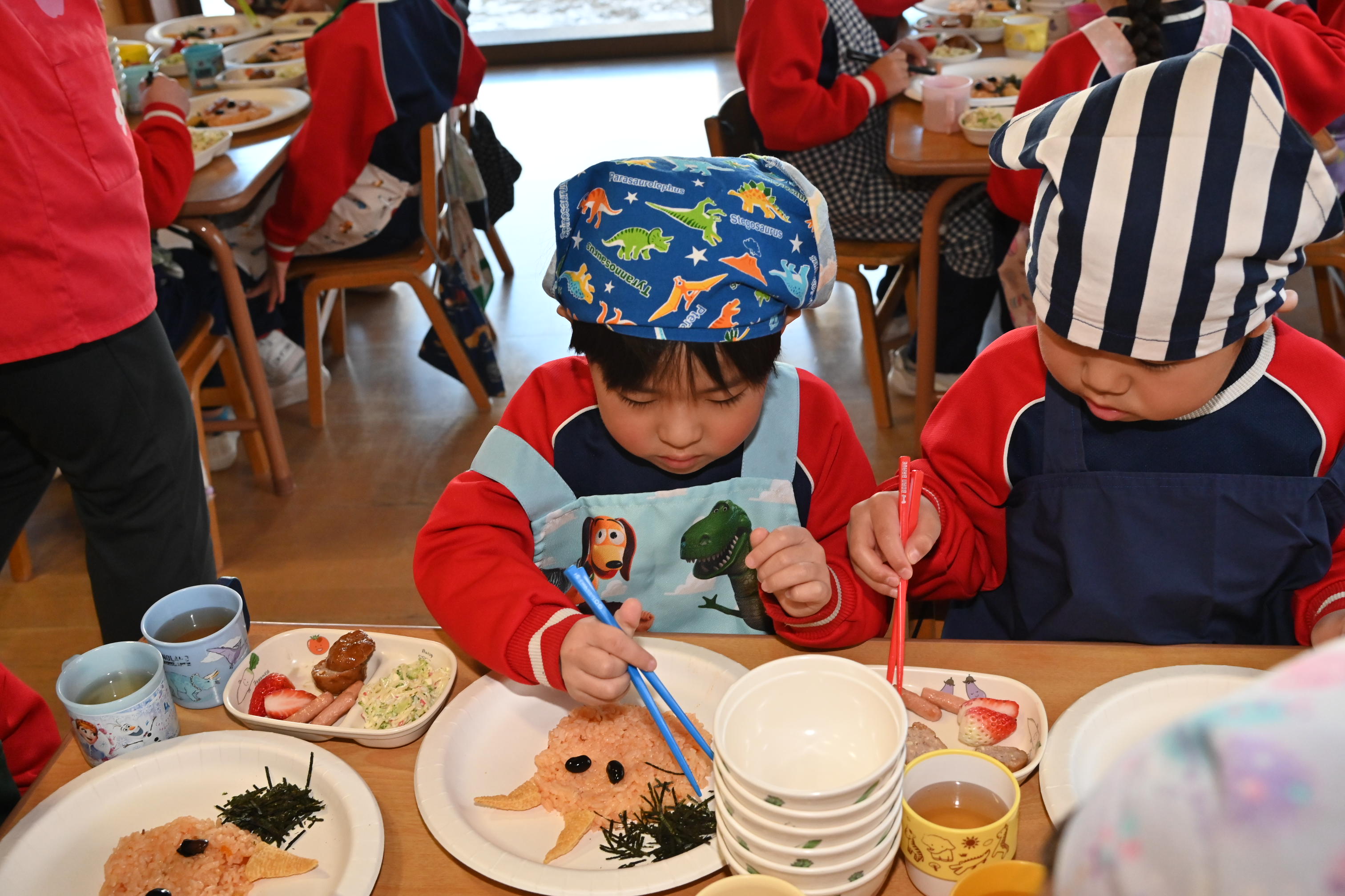 もも組さんのお部屋では節分で食べる恵方巻づくり!