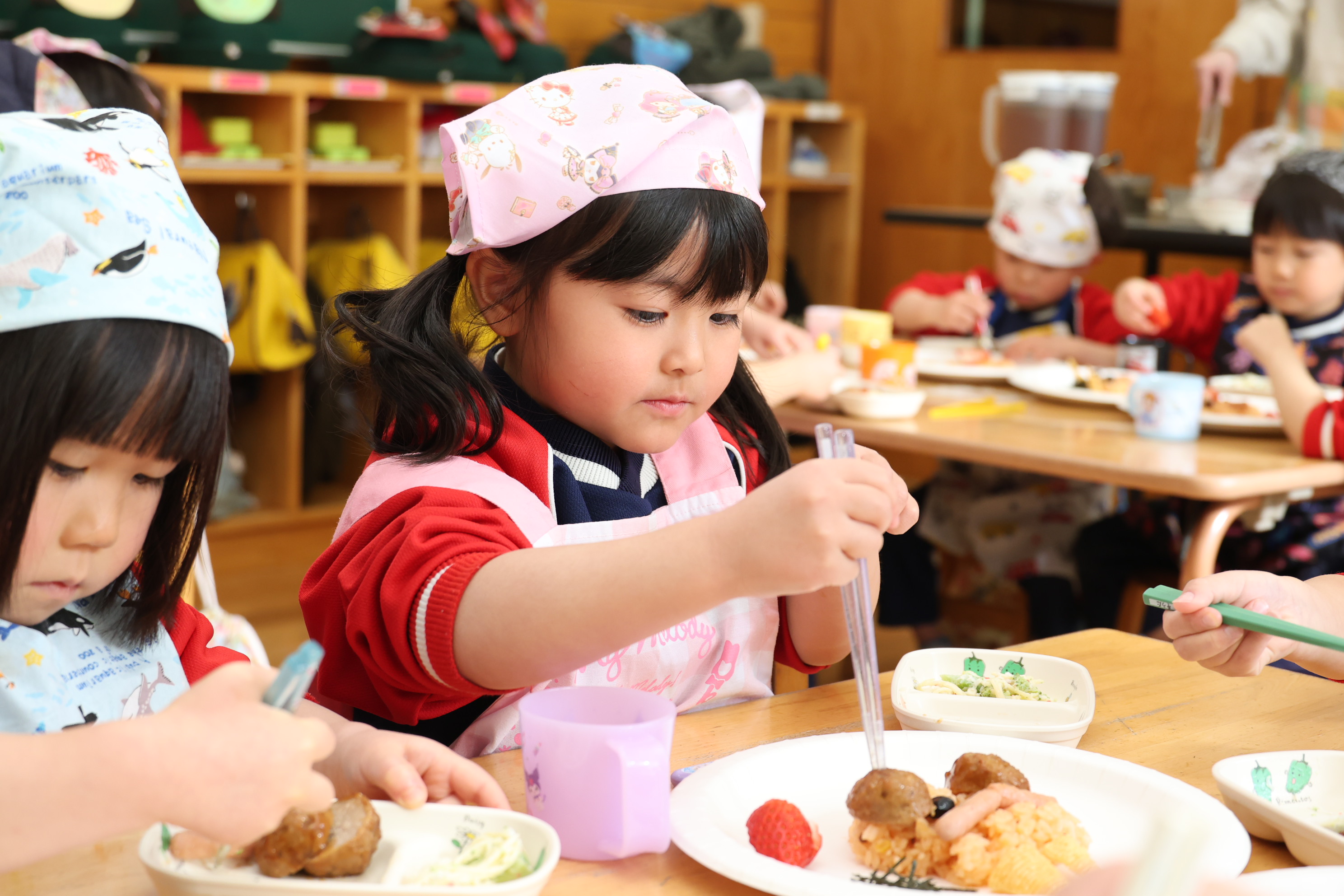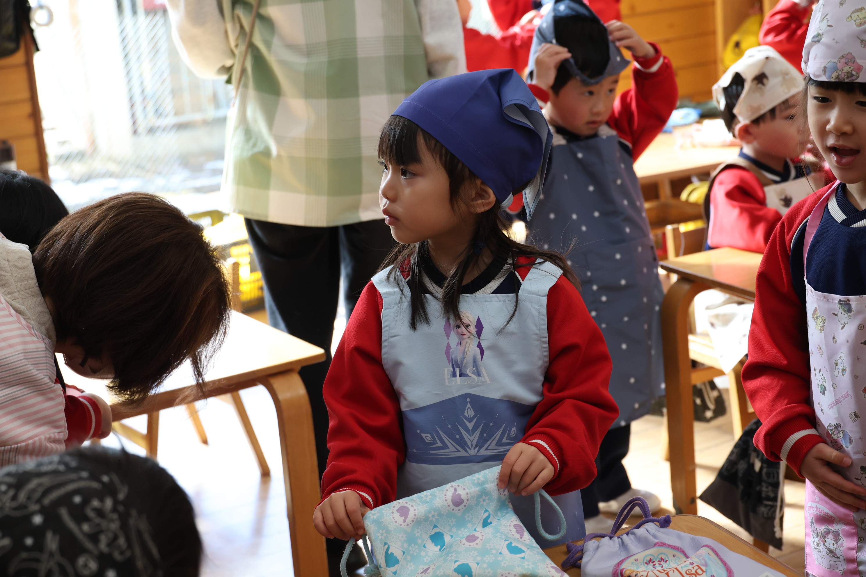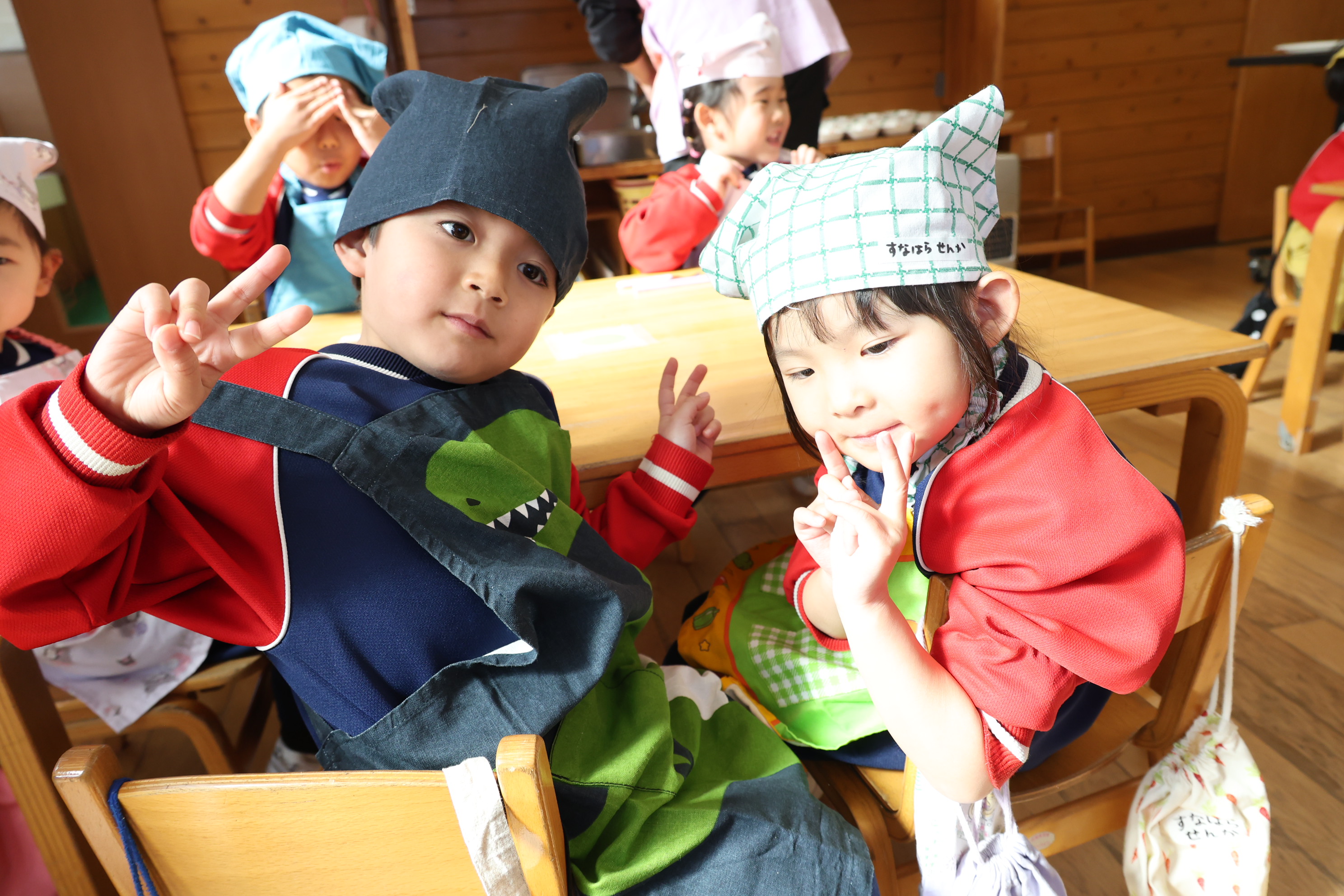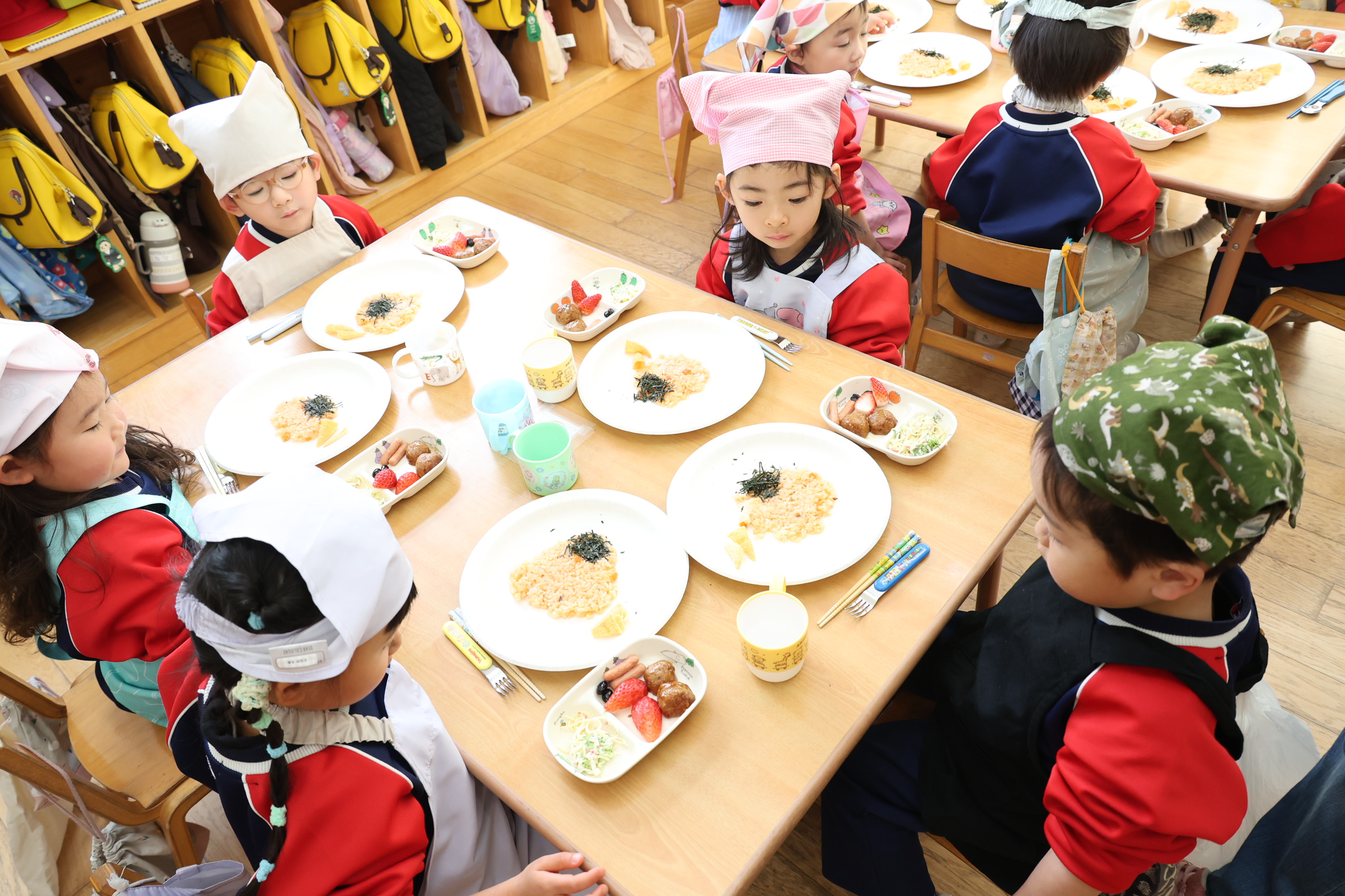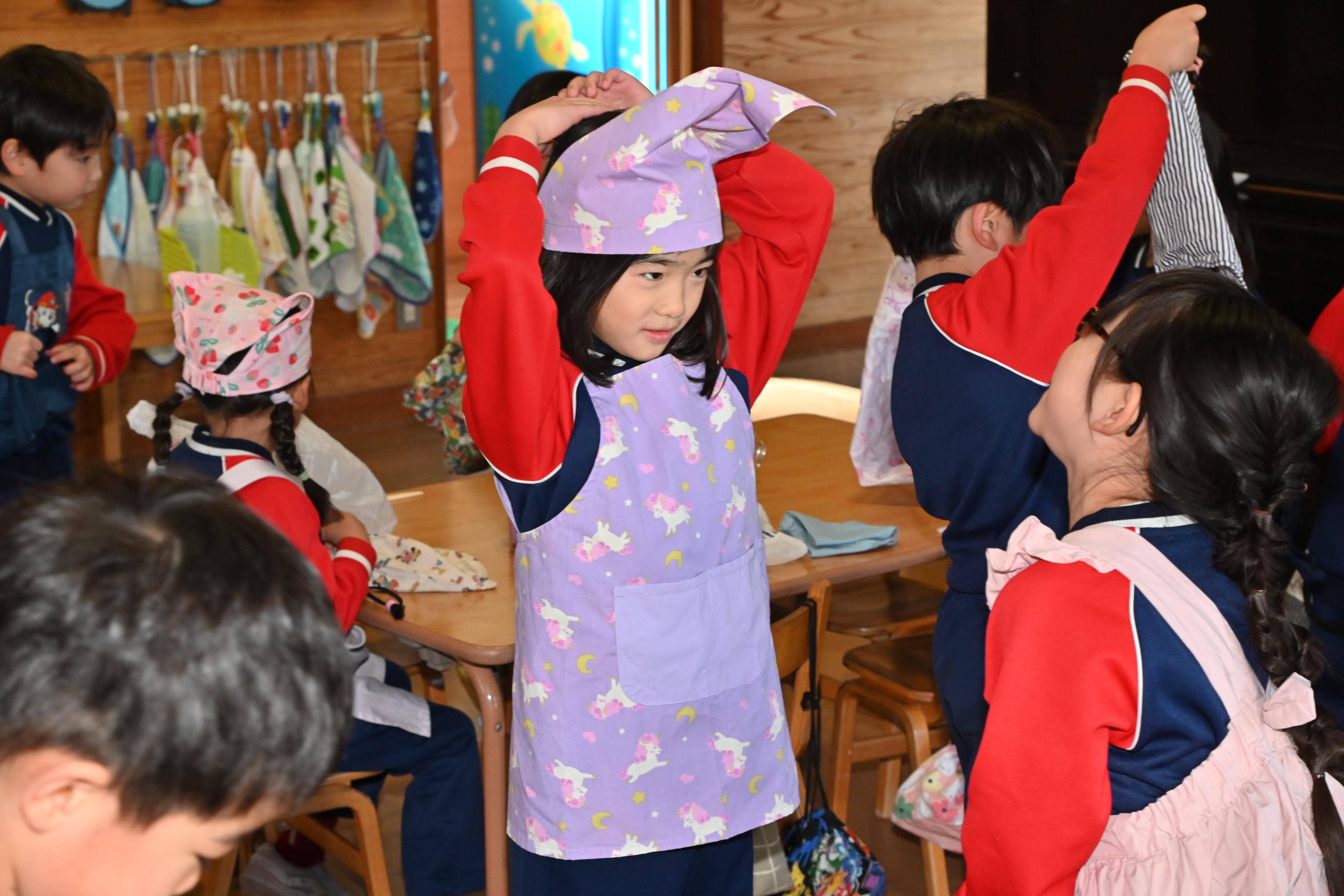 もも組さんのお部屋では節分で食べる恵方巻づくり!