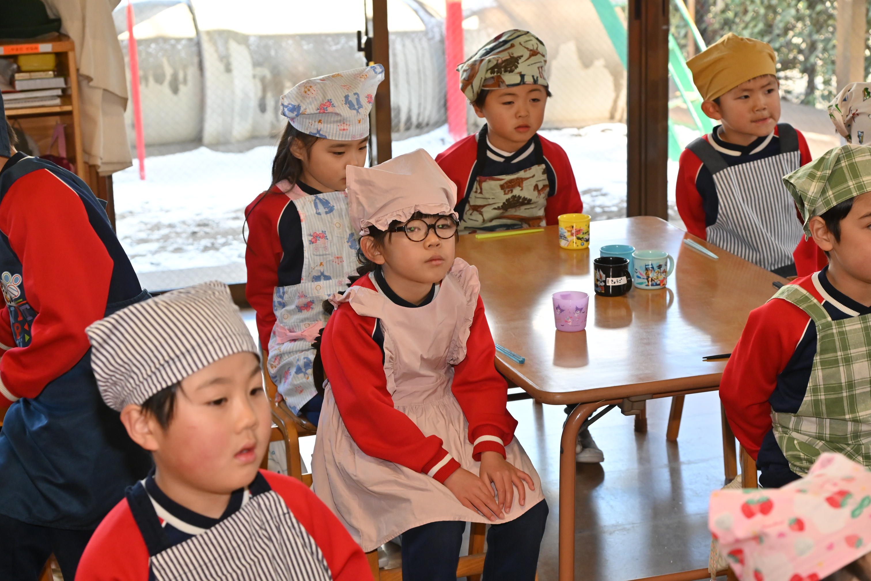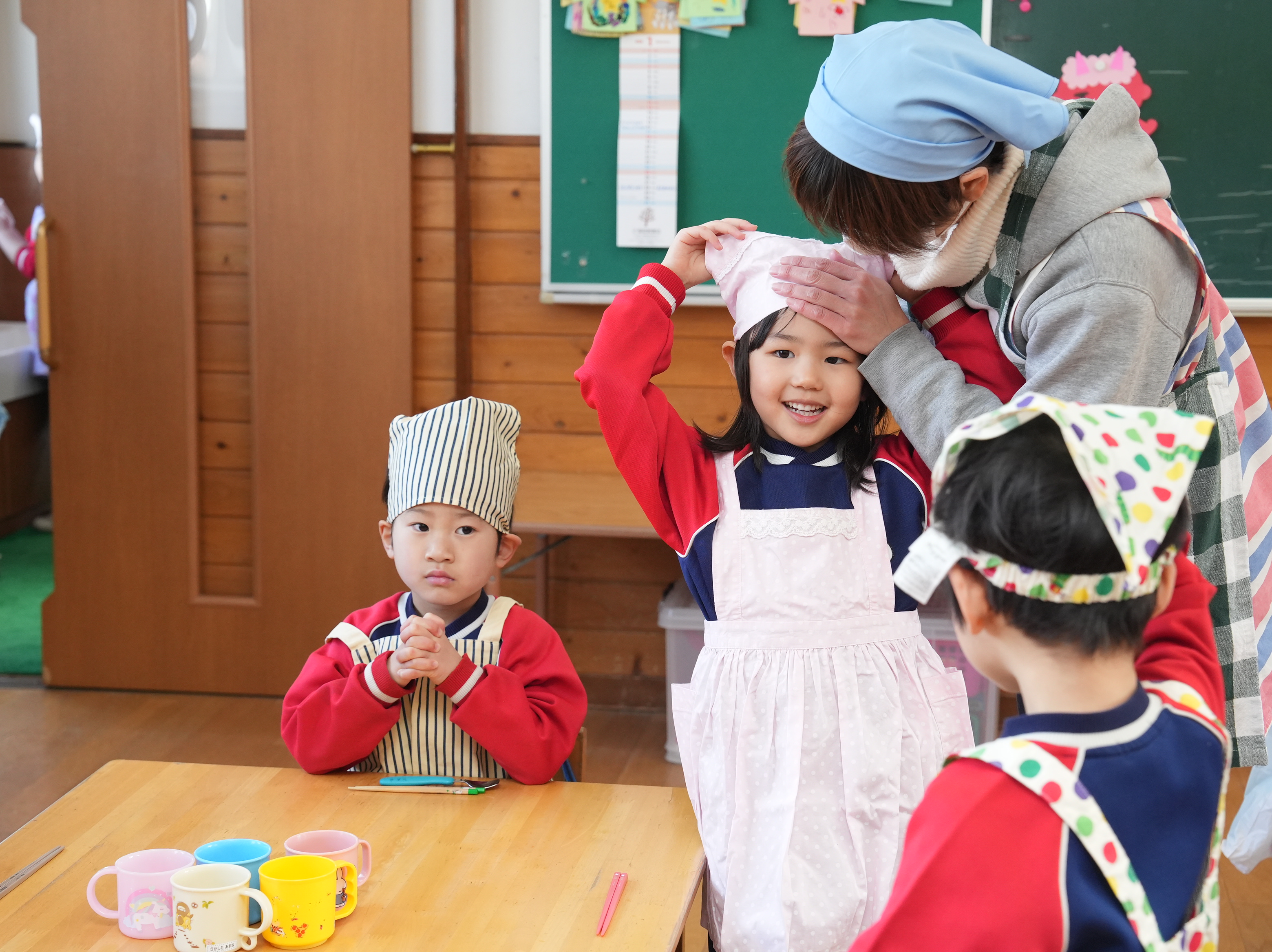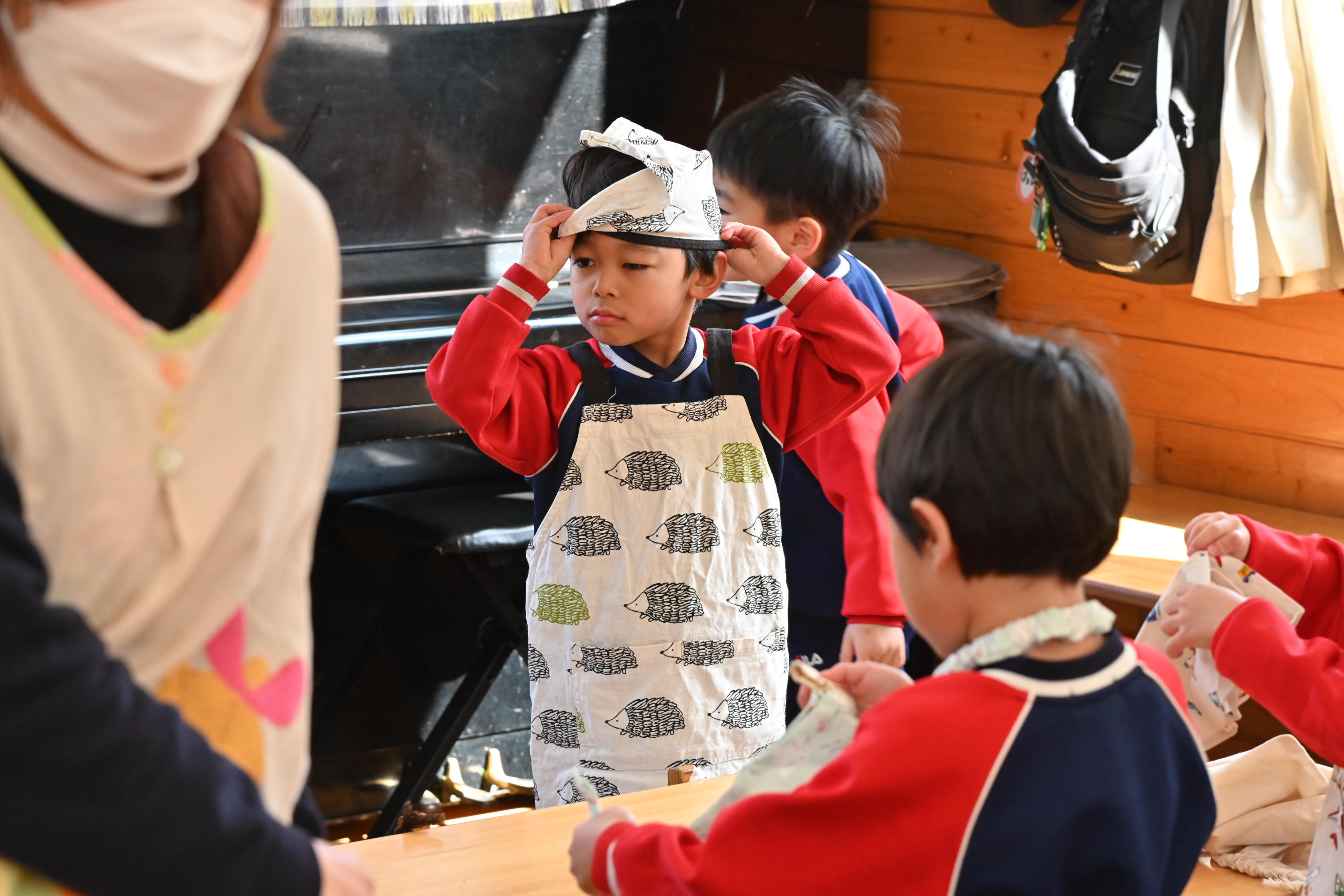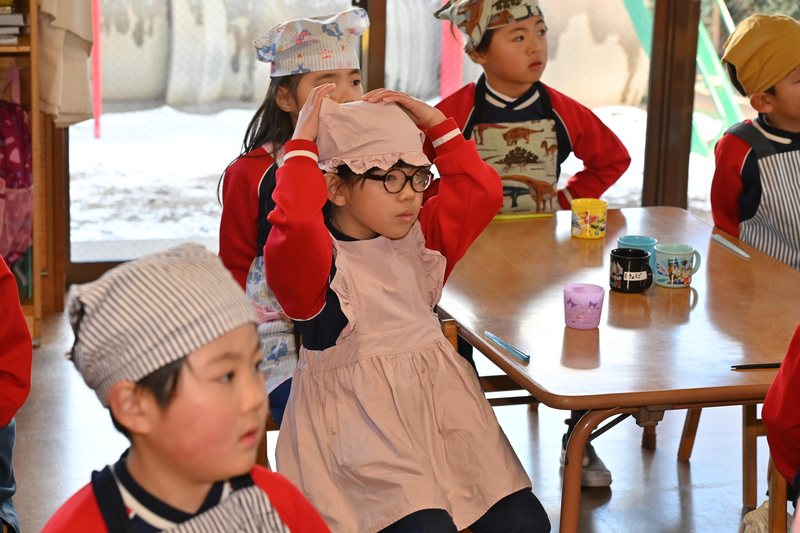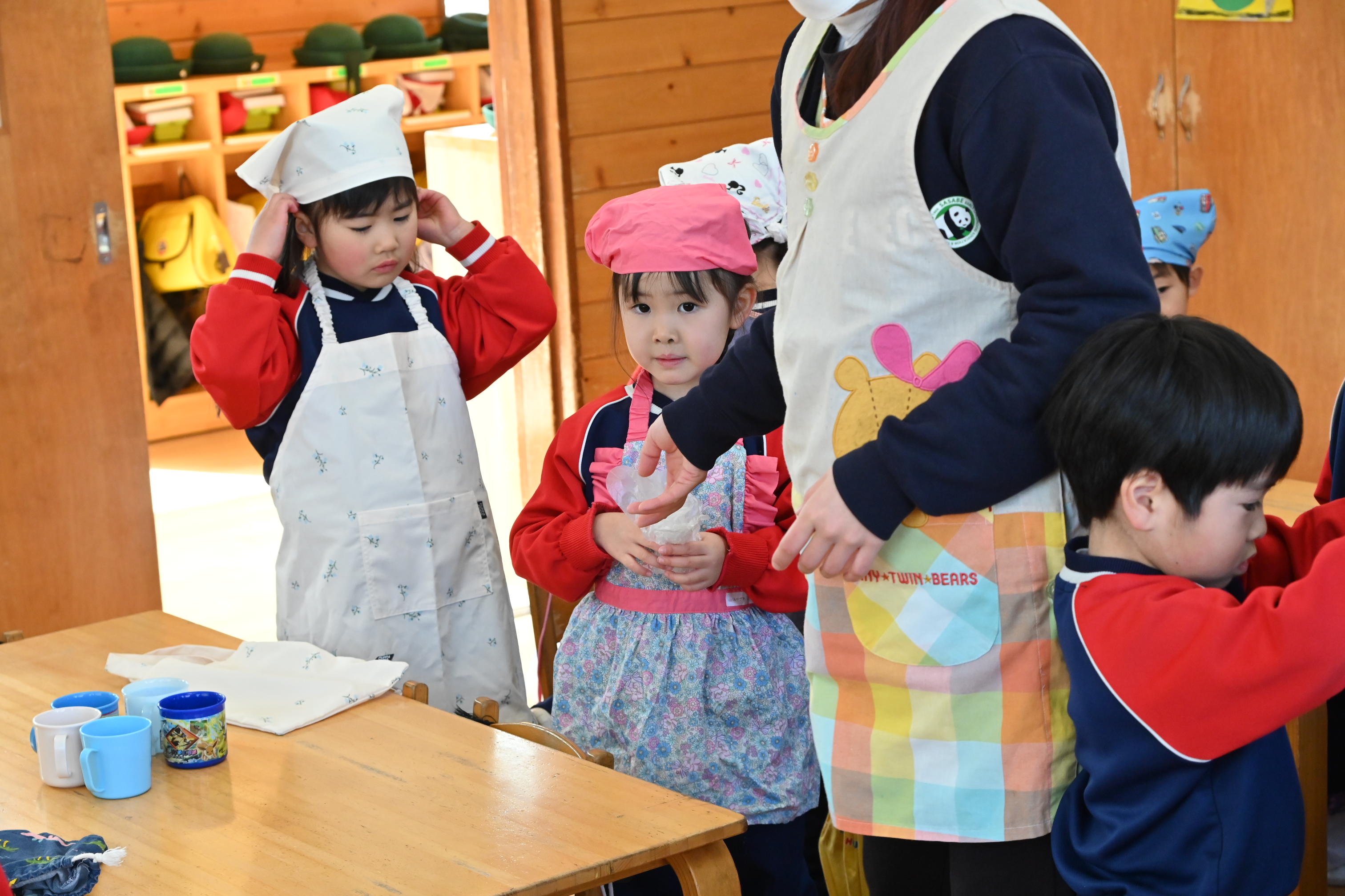 もも組さんのお部屋では節分で食べる恵方巻づくり!