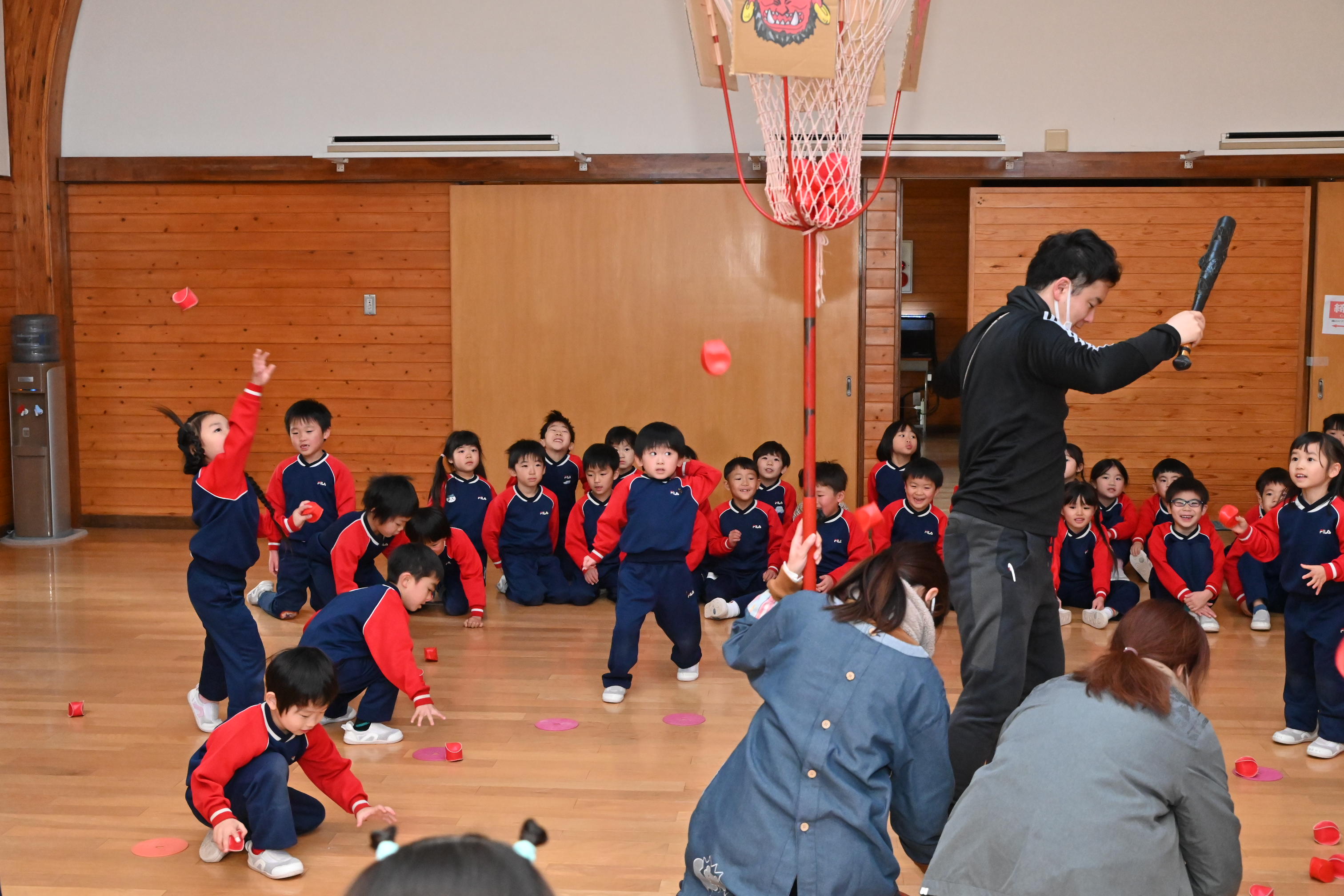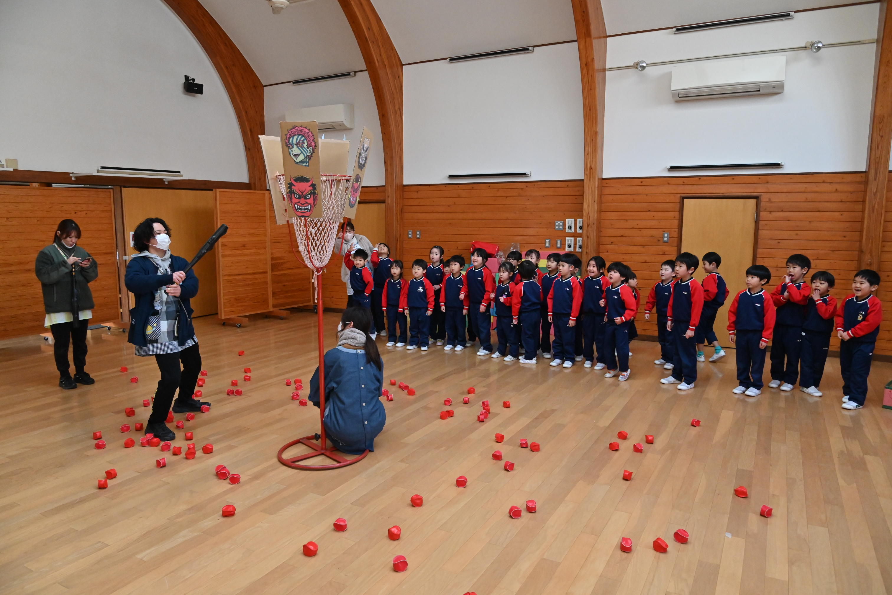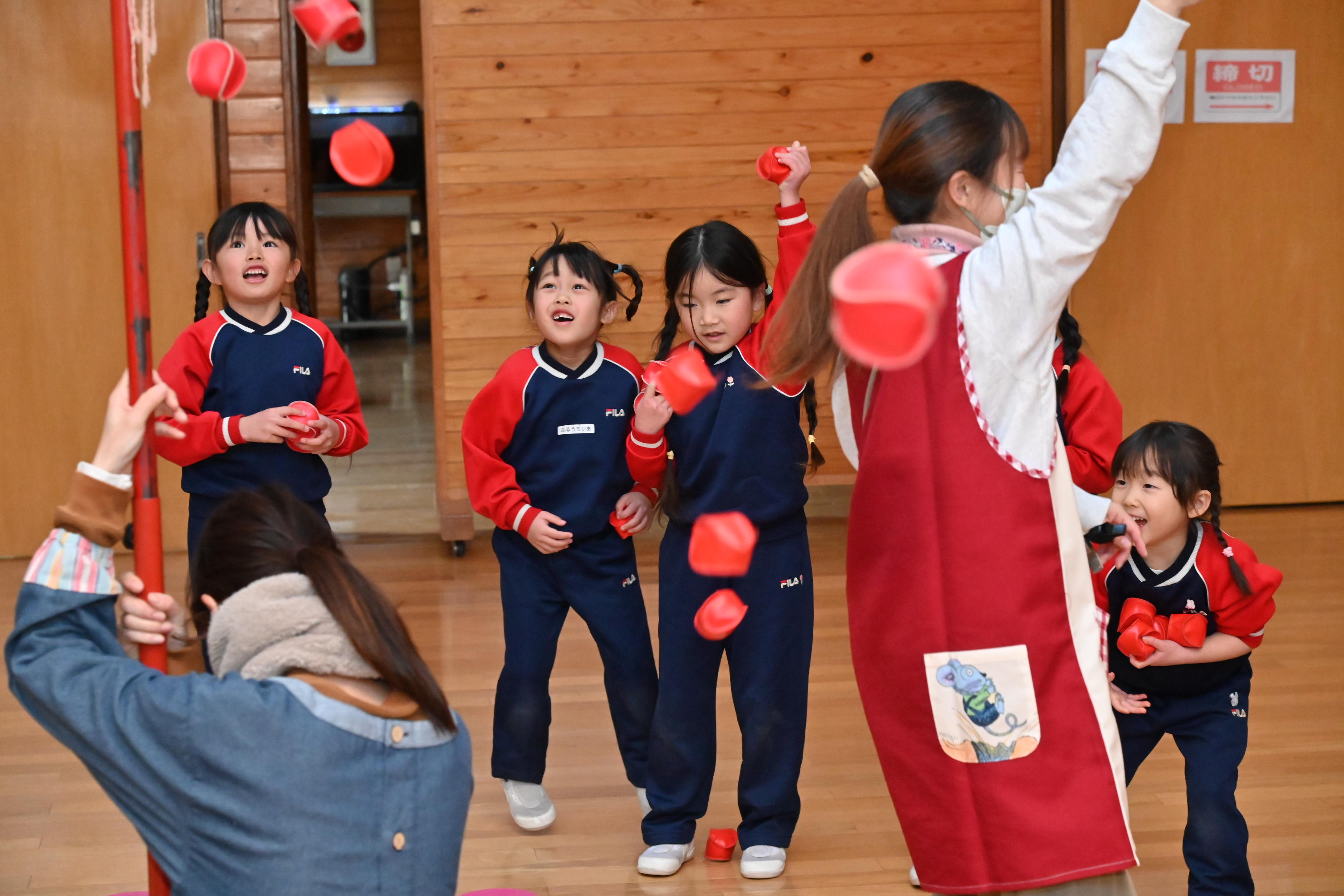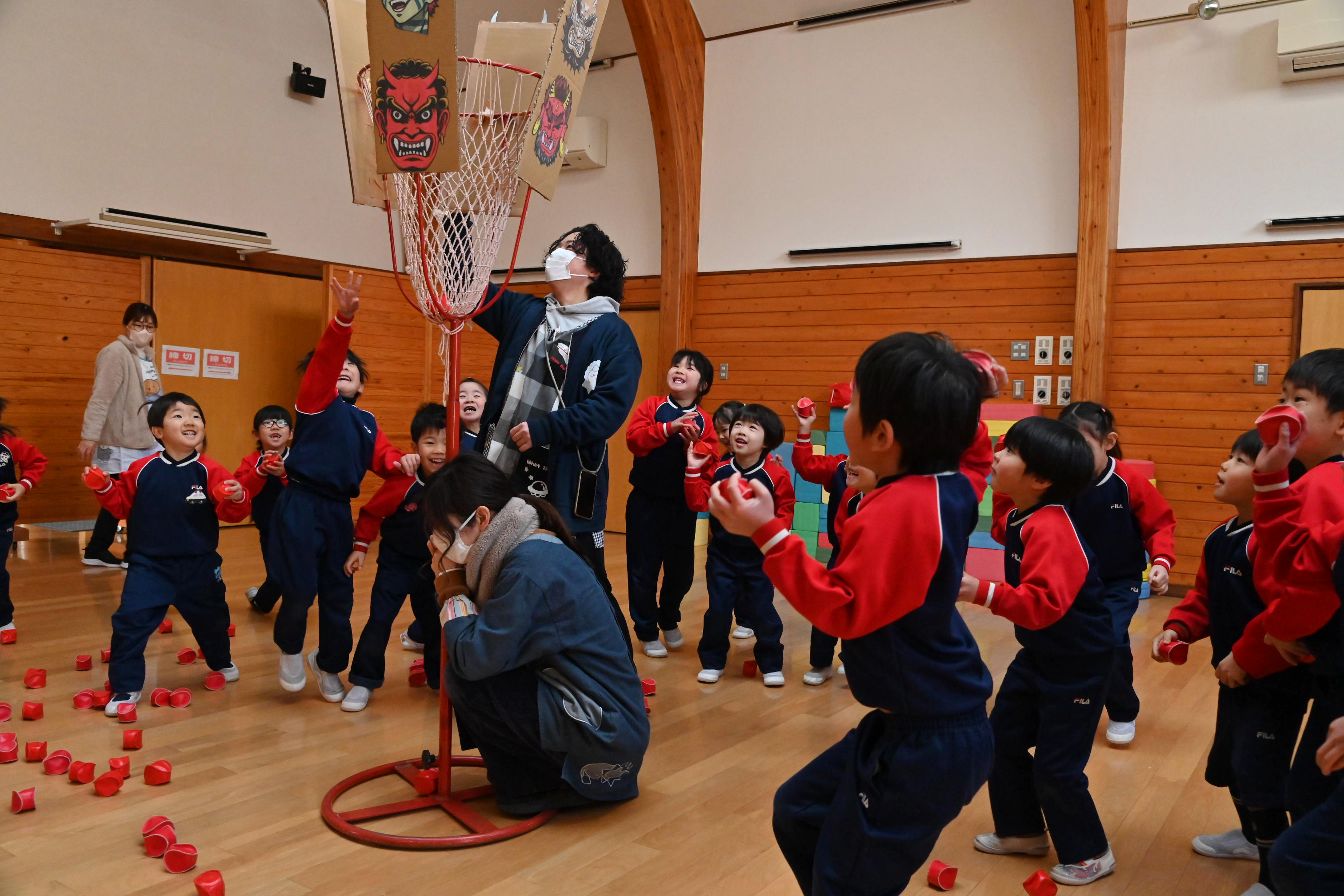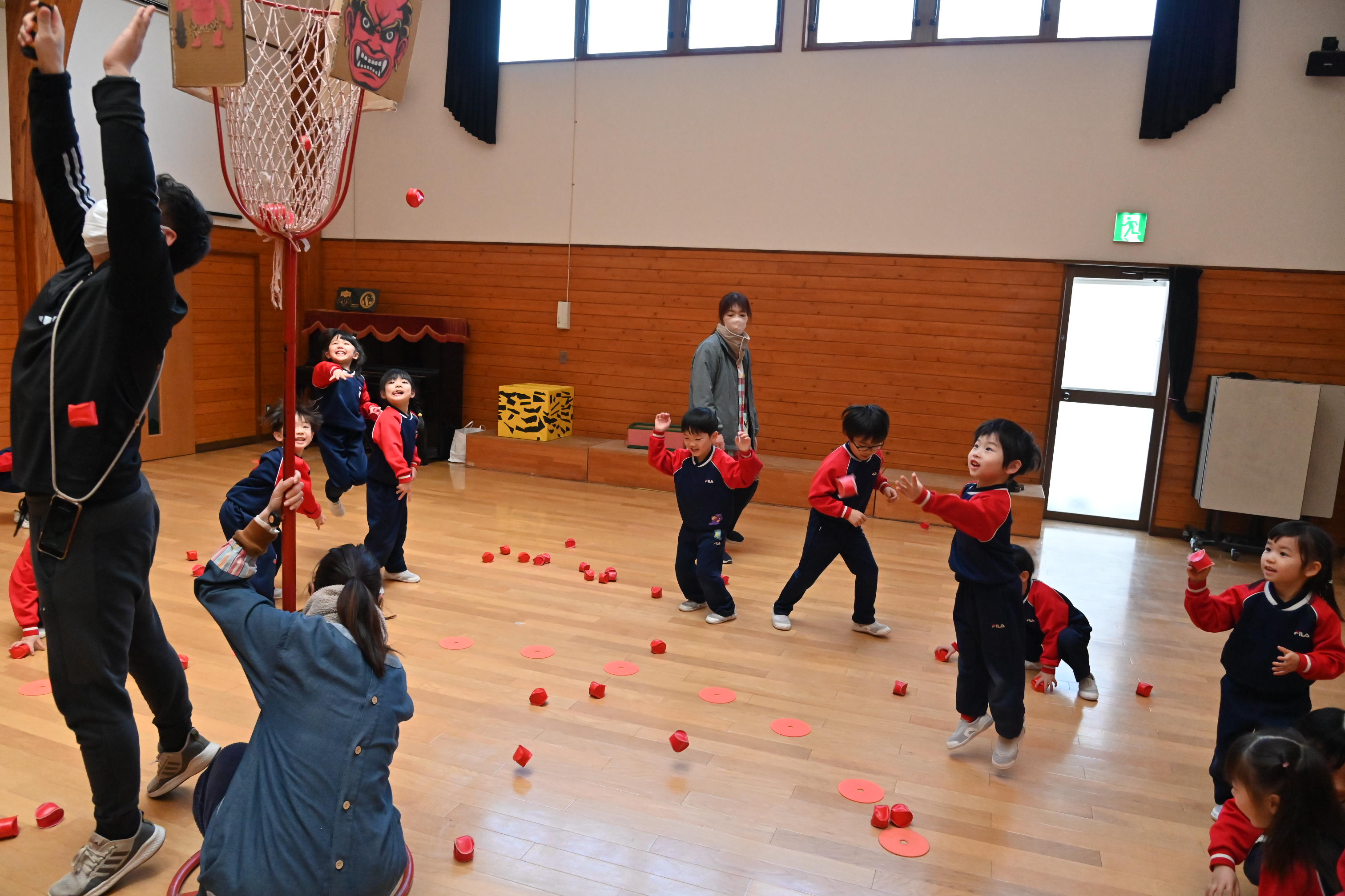 ホールでは玉入れではなく豆入れ~!