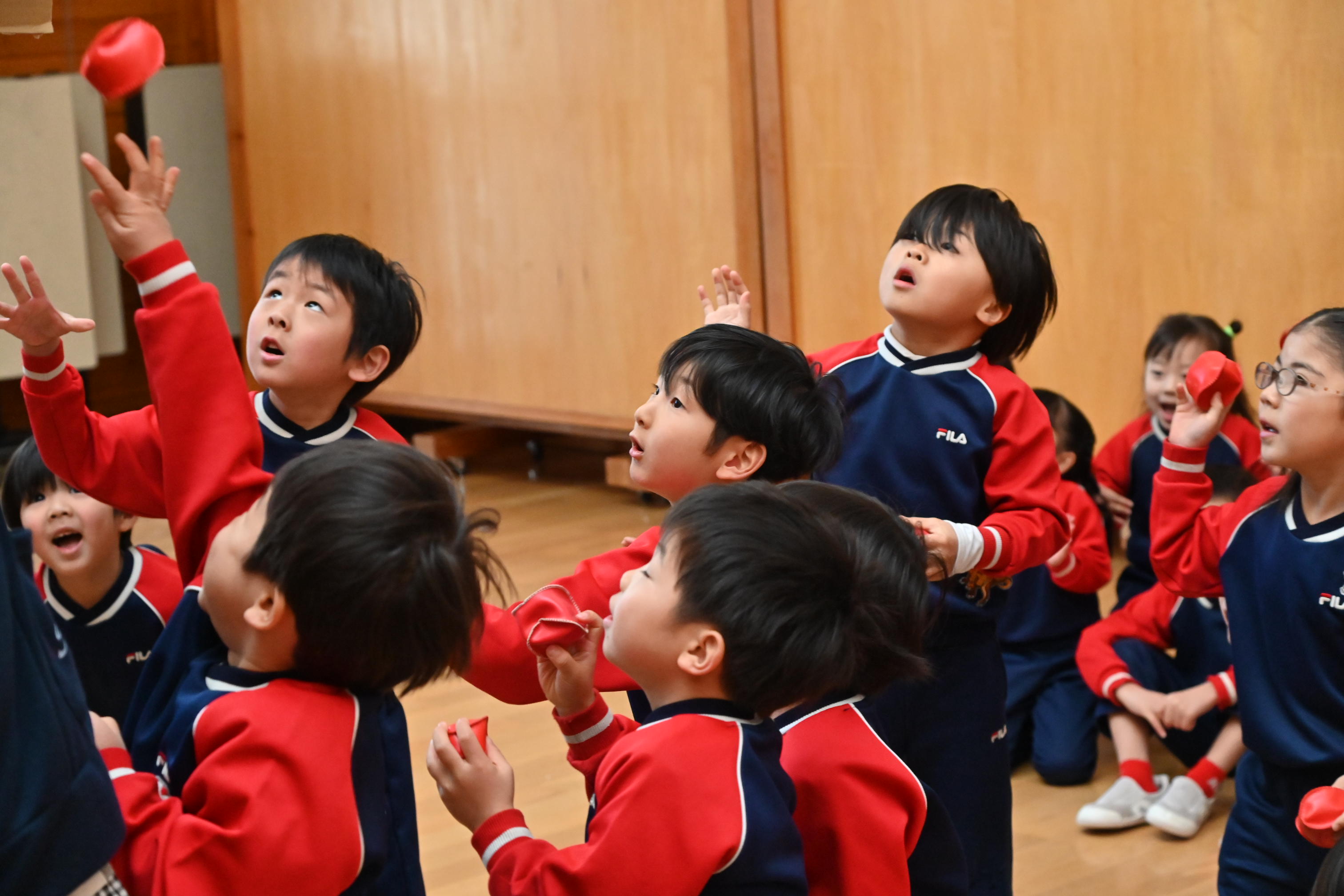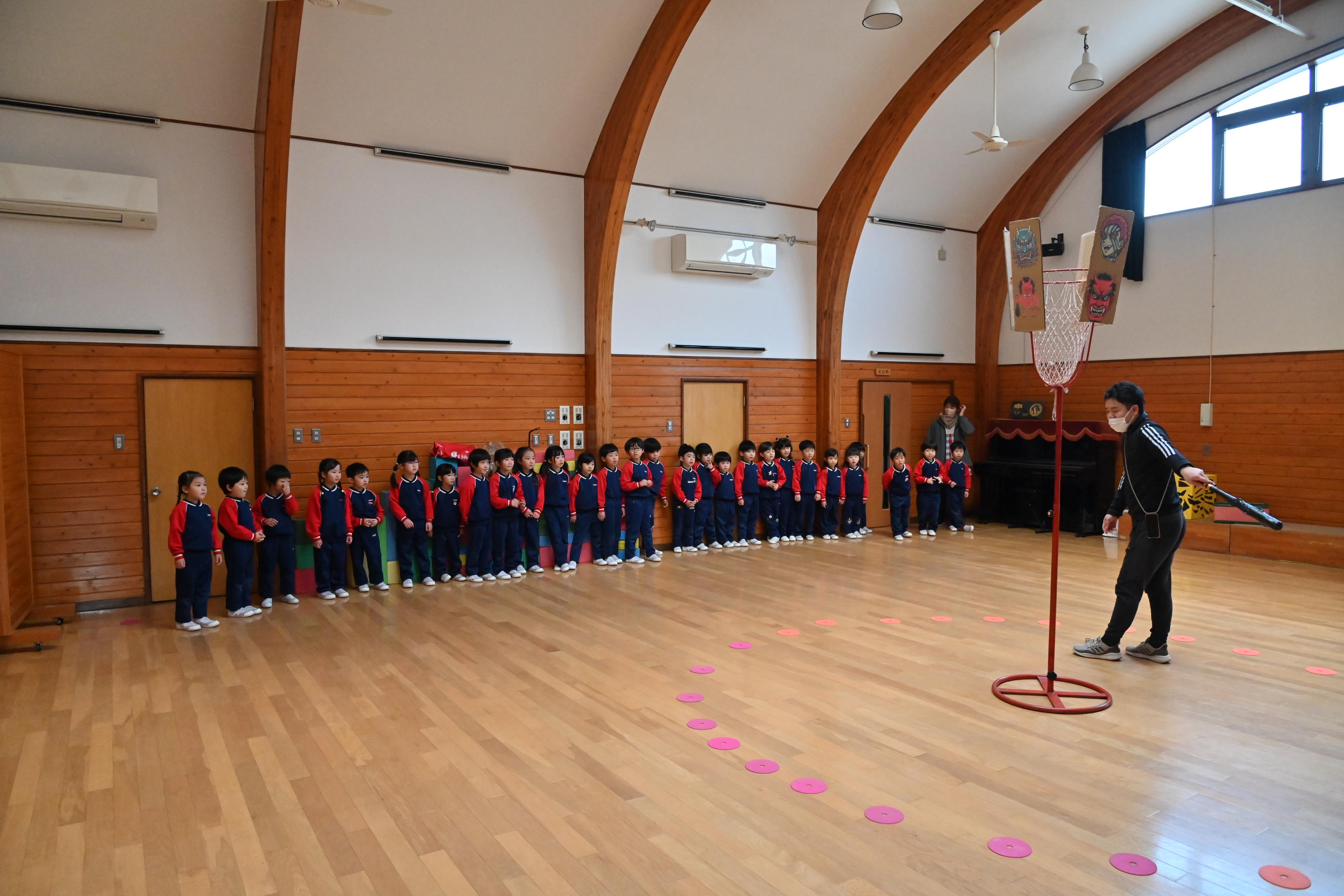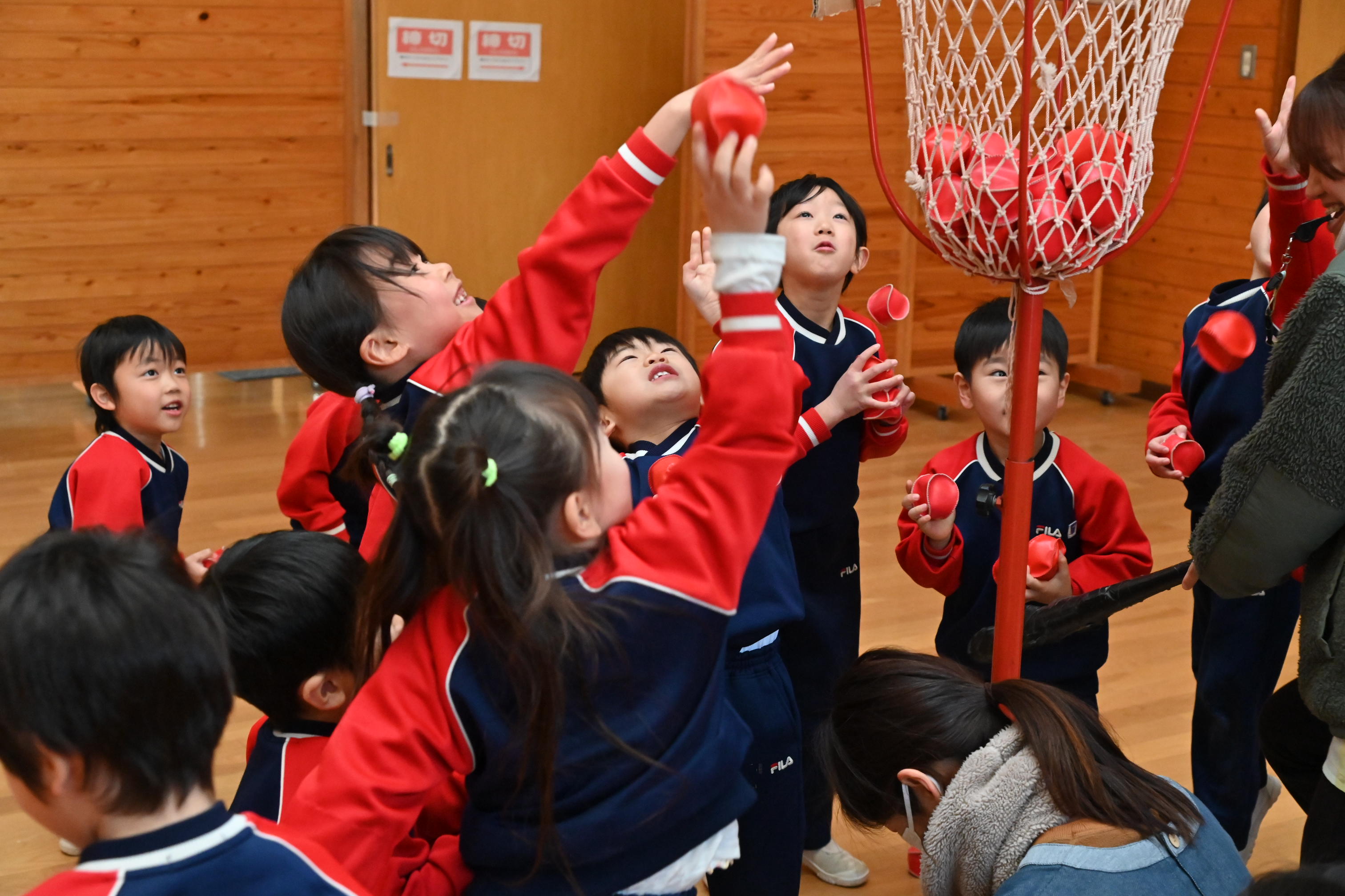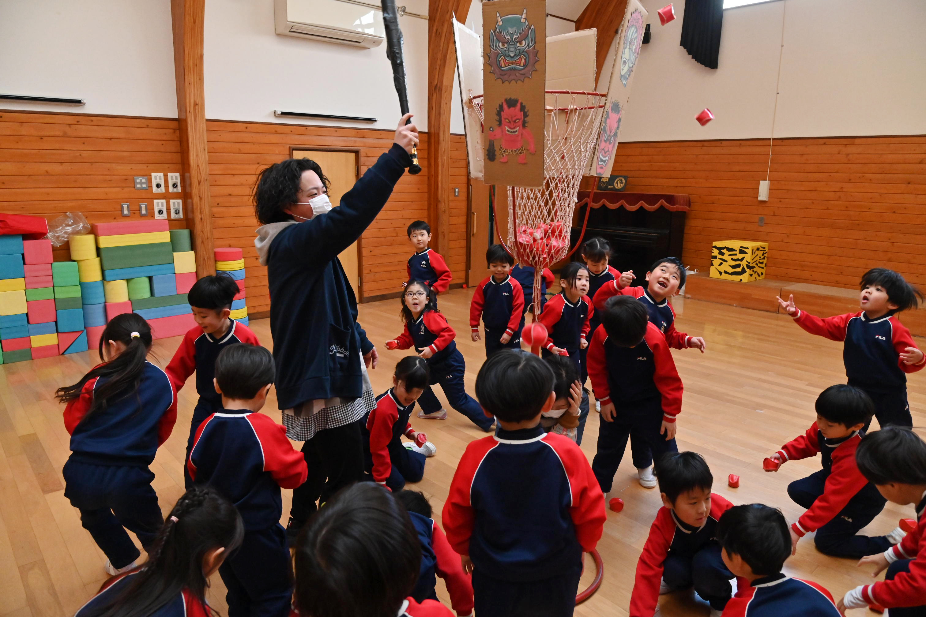 ホールでは玉入れではなく豆入れ~!