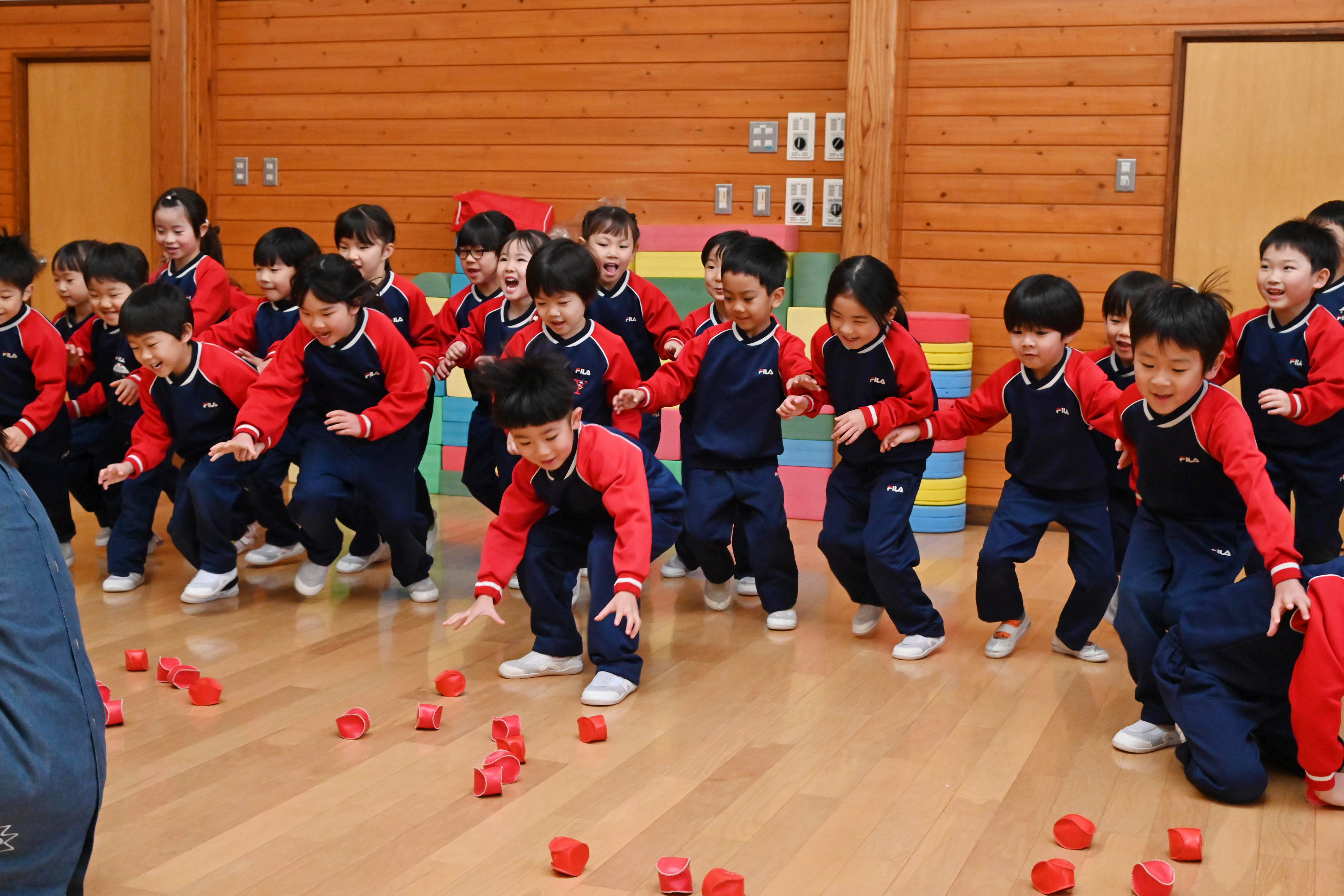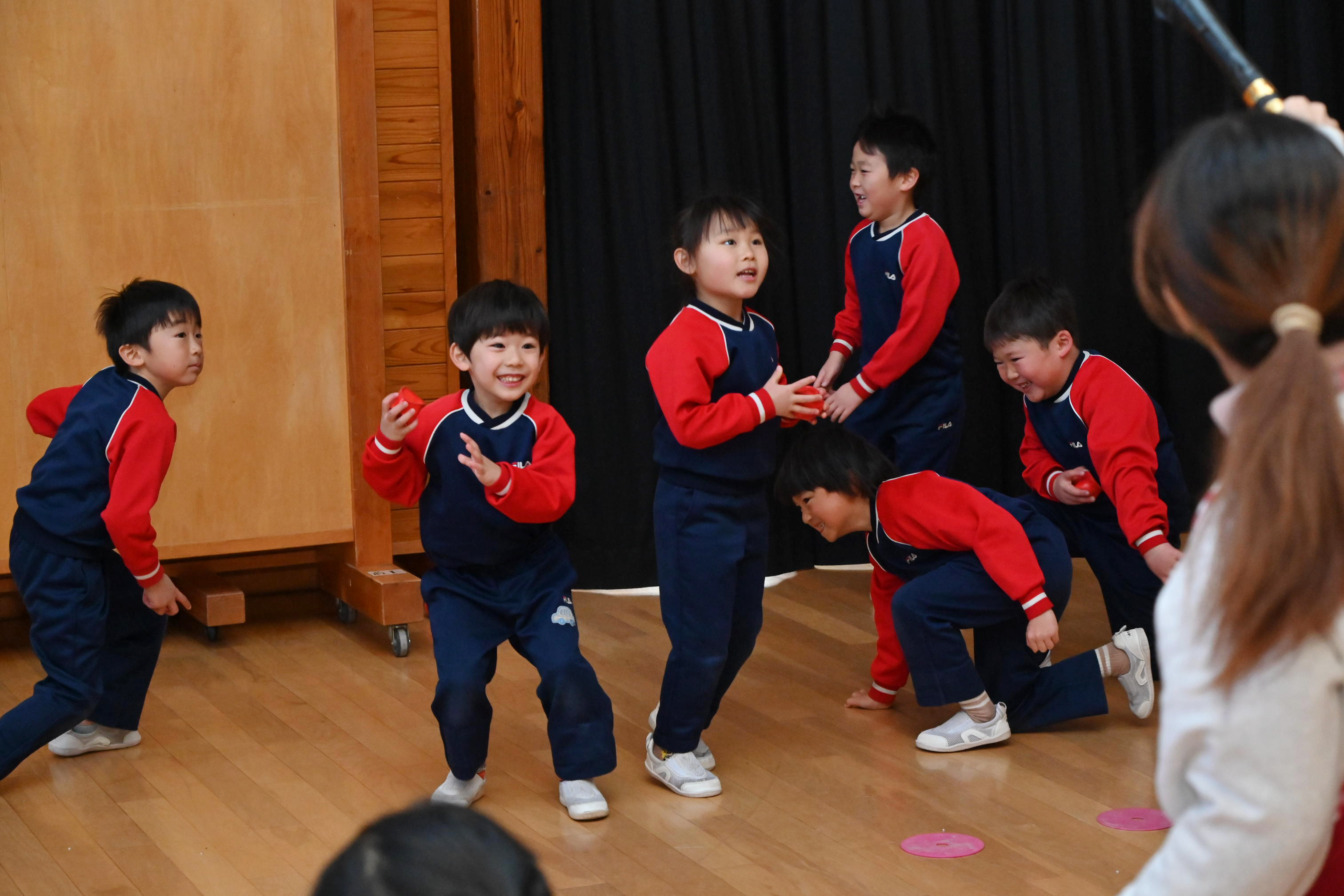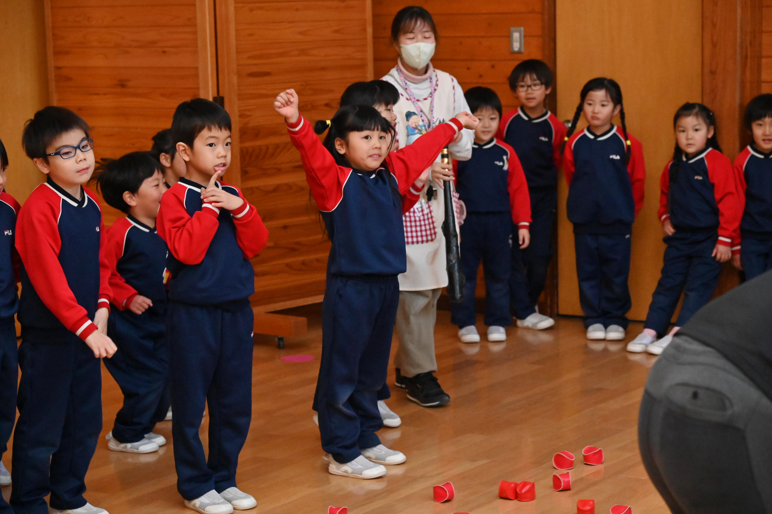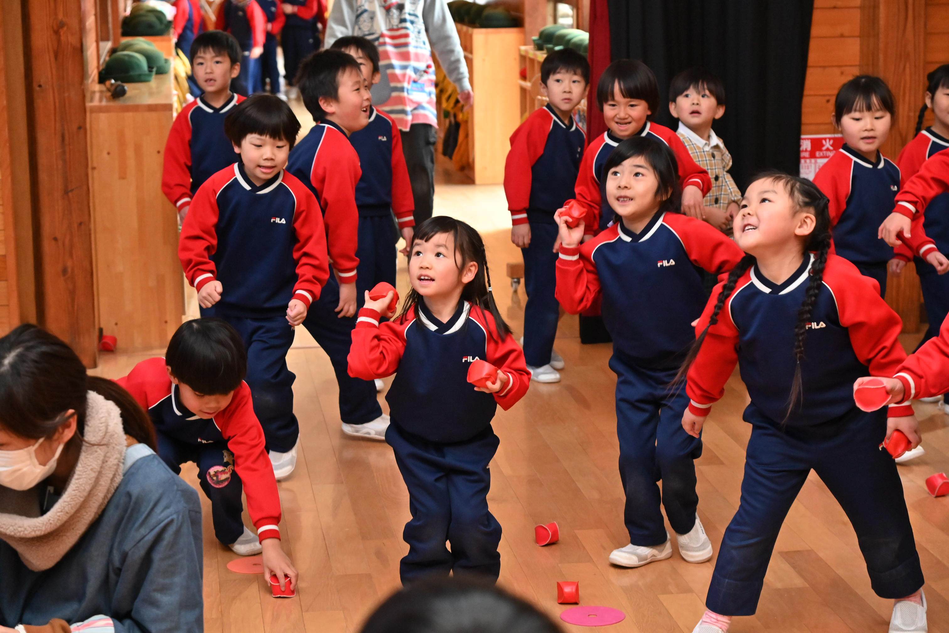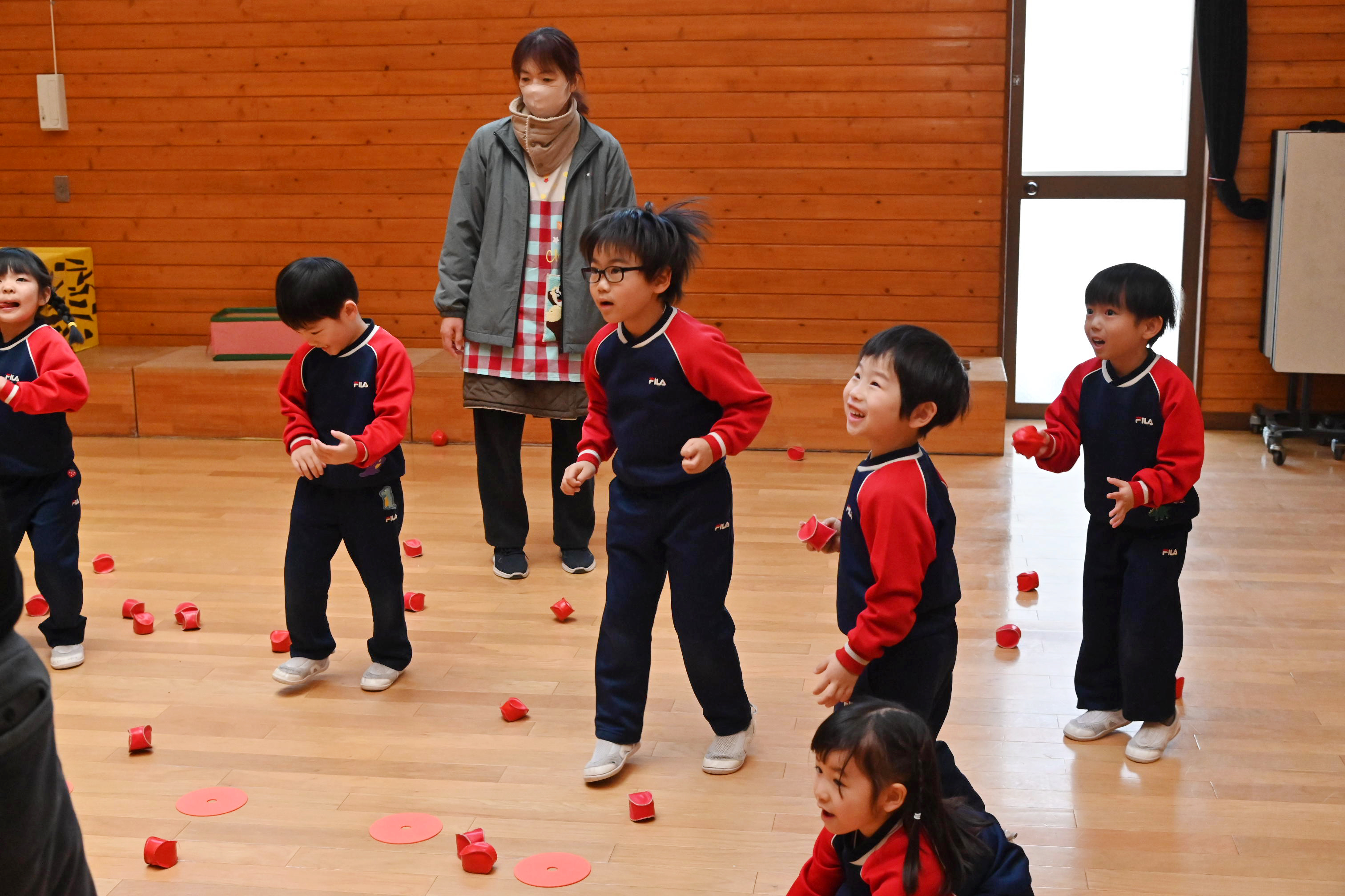 ホールでは玉入れではなく豆入れ~!