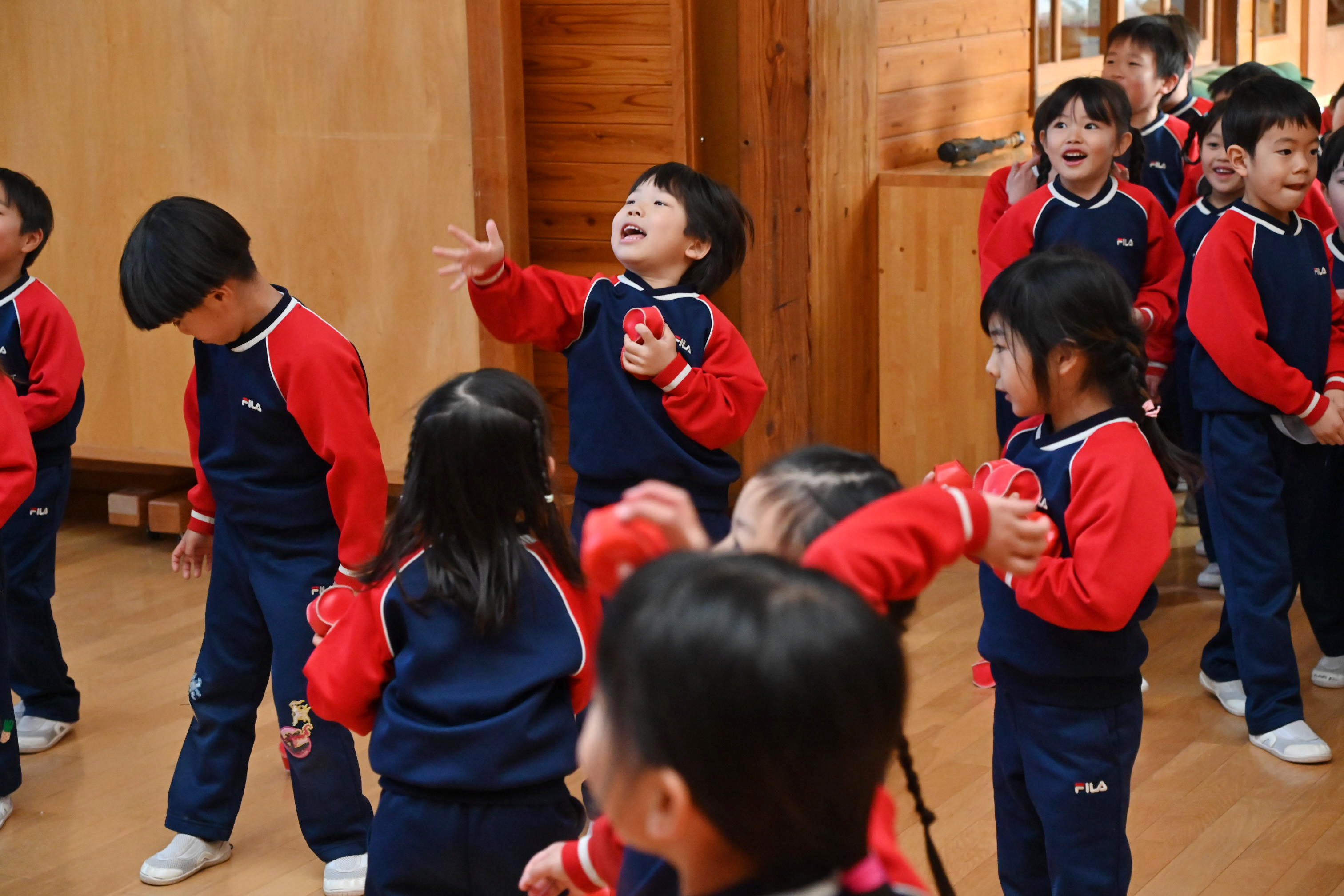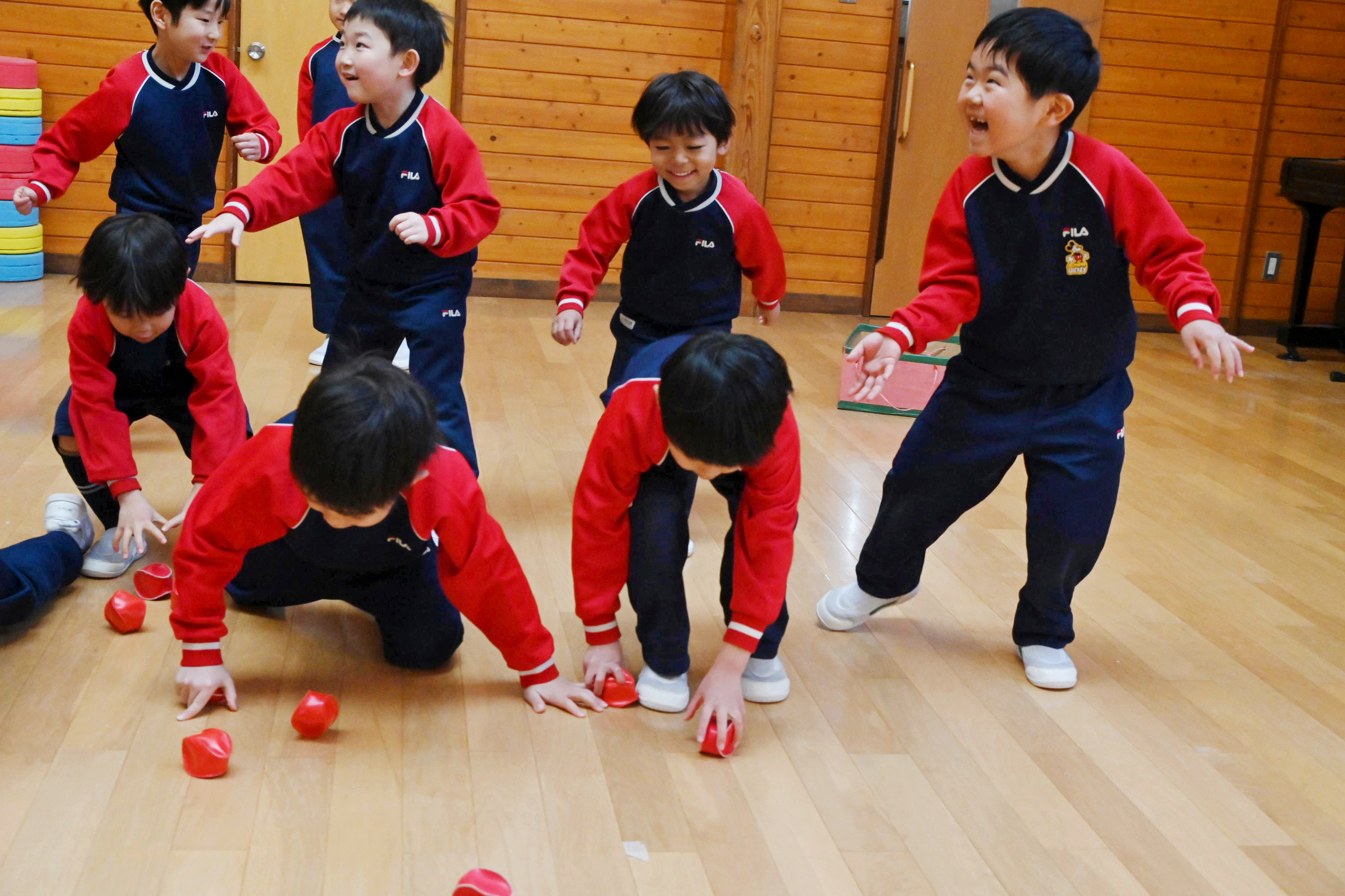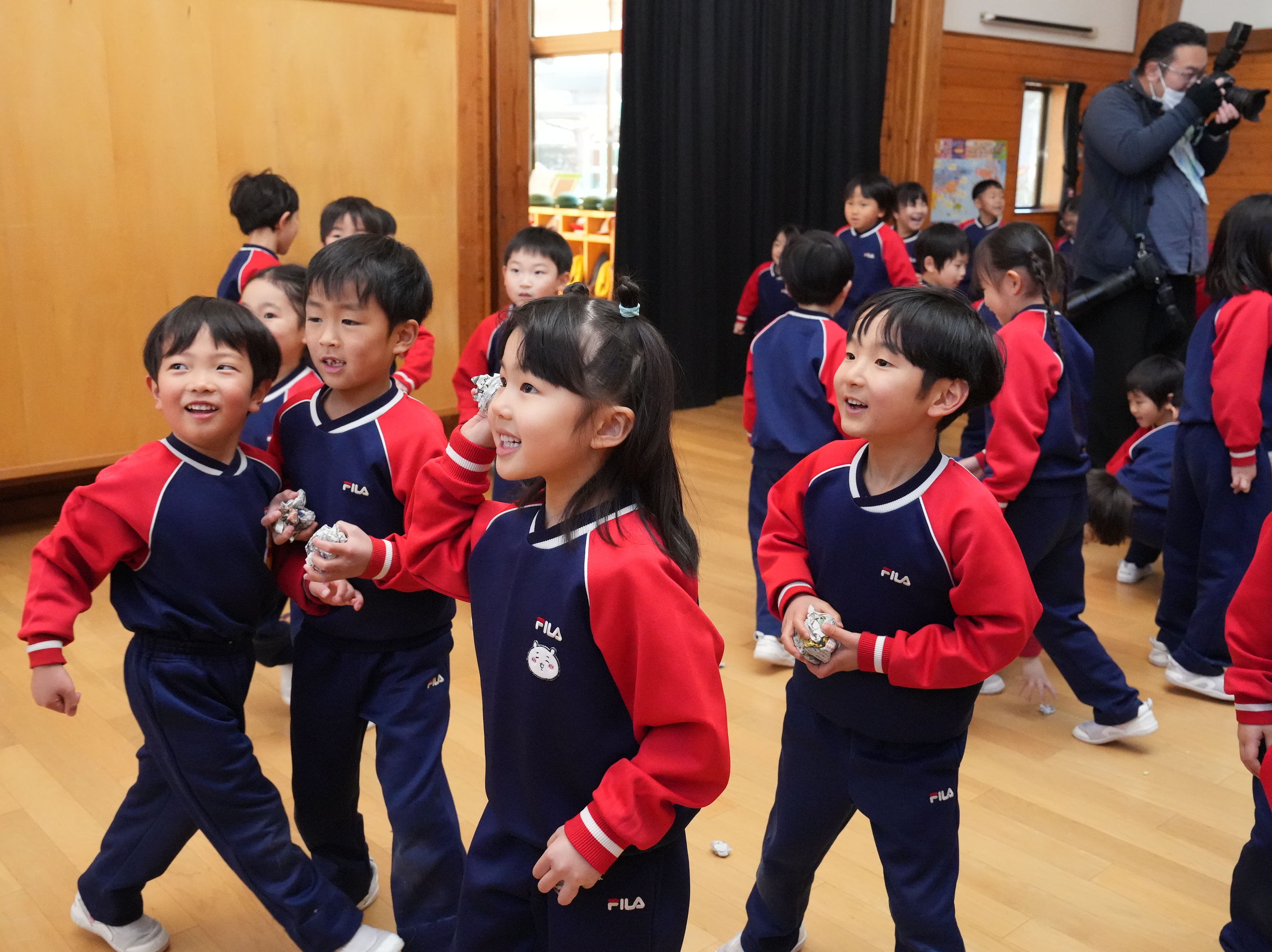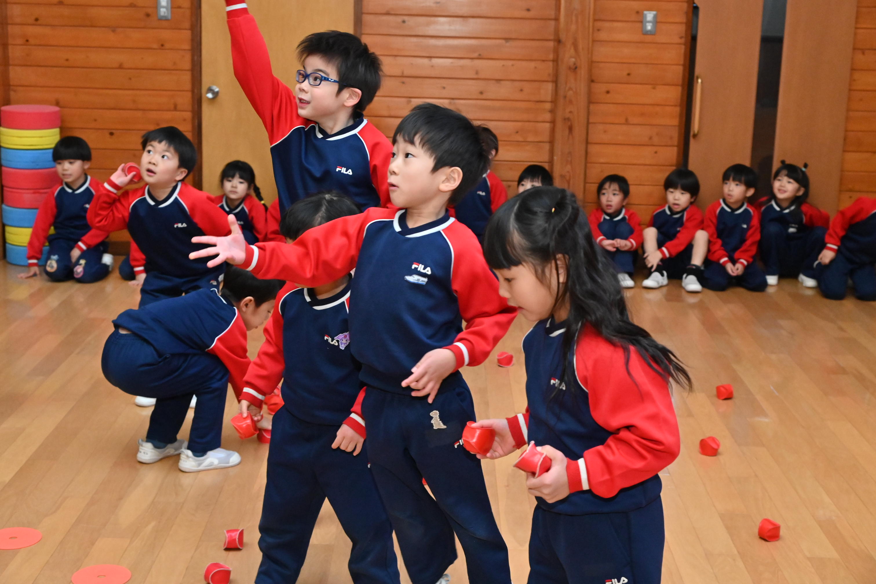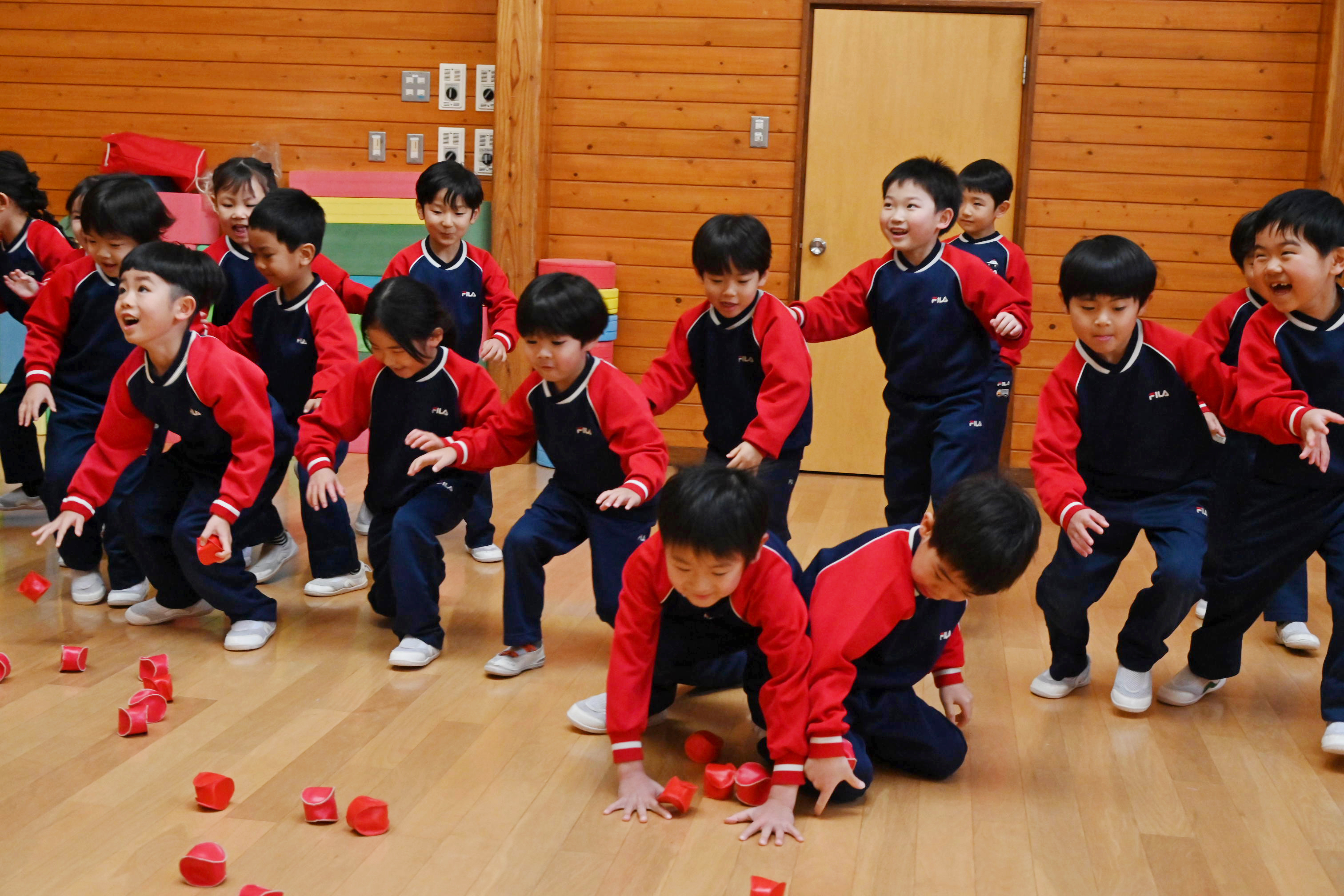 ホールでは玉入れではなく豆入れ~!