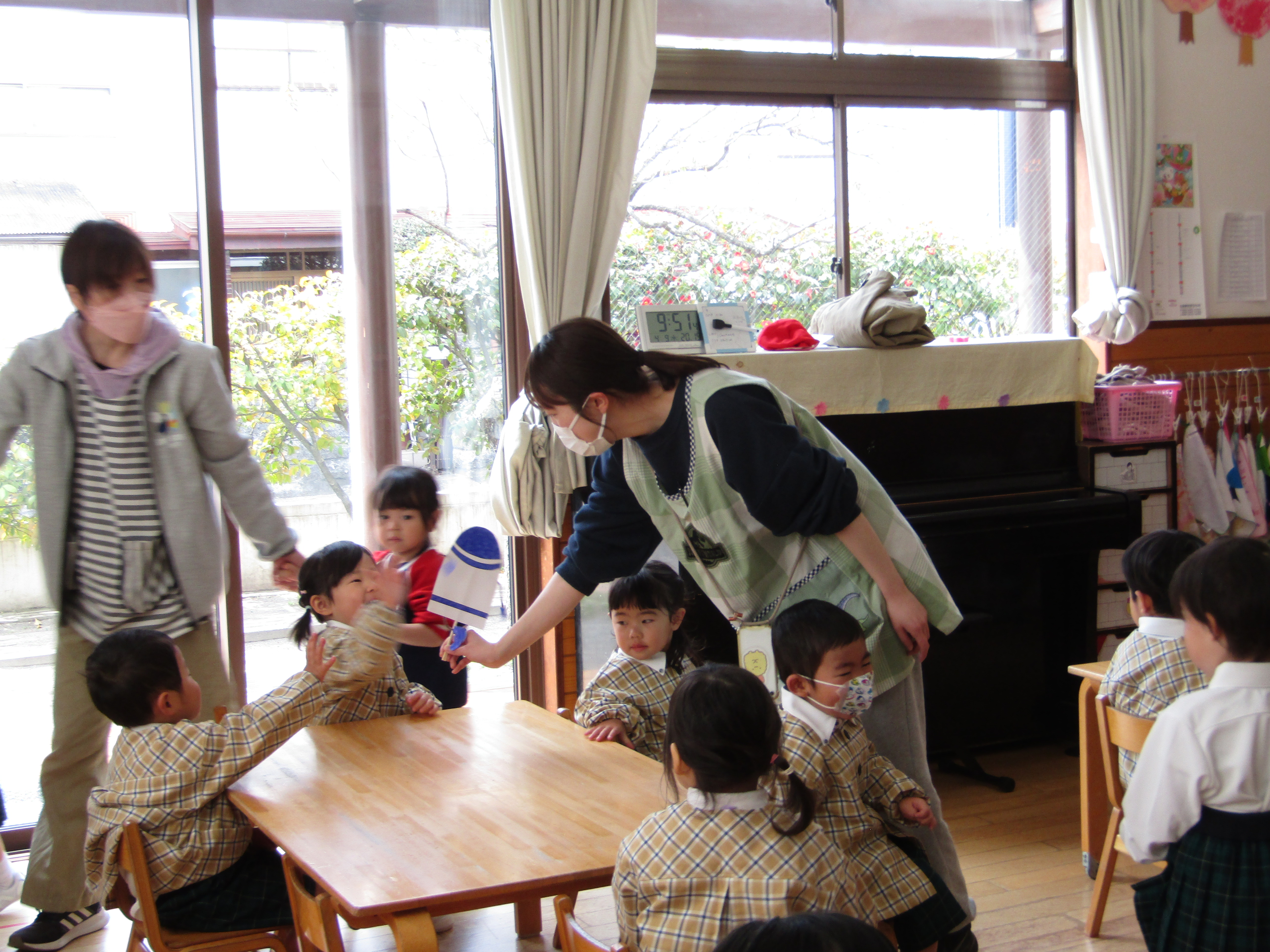 お歌の時間も出席確認も