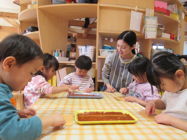 指スタンプで焼き目を付けて、いい感じ♩