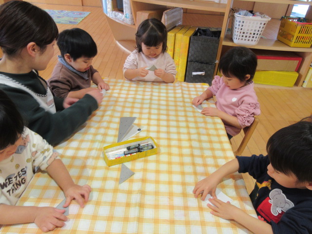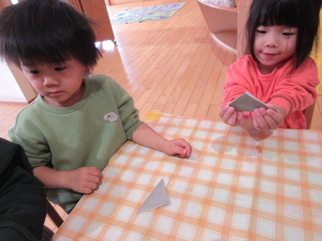 初めての折り紙に挑戦しました✨半分に折ってから…